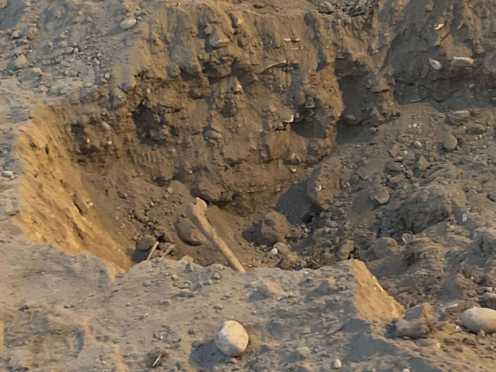 Yapılan incelemenin ardından bölgenin eski dönemlere ait bir mezarlık olduğu bildirilirken, kemikler yapılan incelemenin ardından bulunduğu bölgeye geri gömüldü. Yapılan işlem sırasında ise kemik parçaları çıkmaya devam etti.