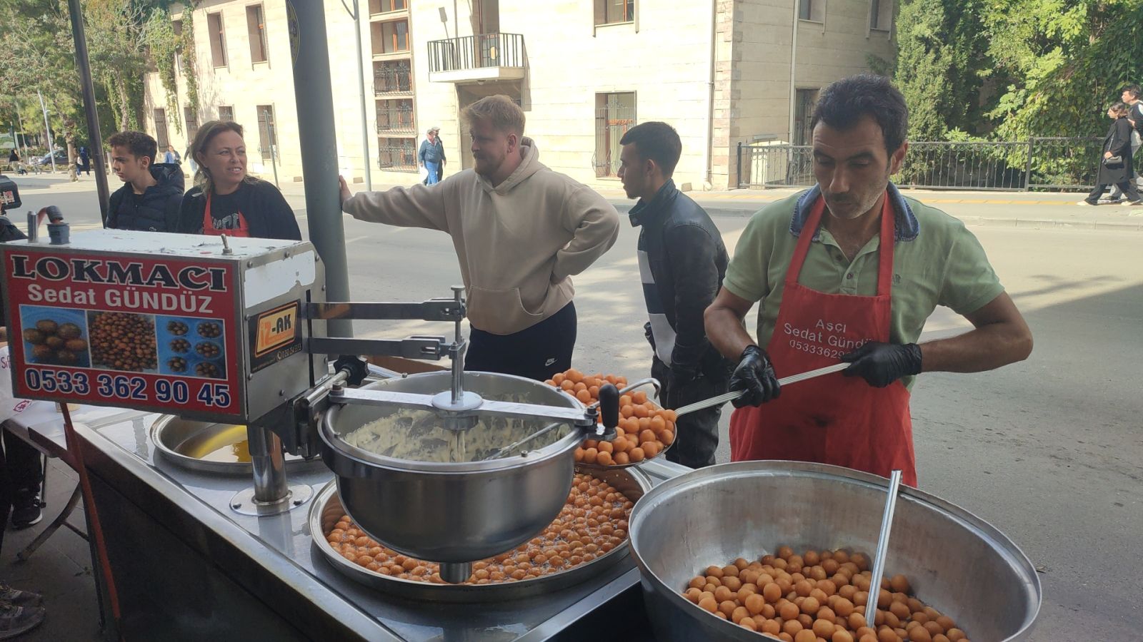 Bugün öğle saatlerinde, Burdur Valiliği binası karşısındaki Gazi Caddesi üzerinde kazanlarda pişirilen lokma tatlıları, caddeden geçen vatandaşlara ikram edildi.