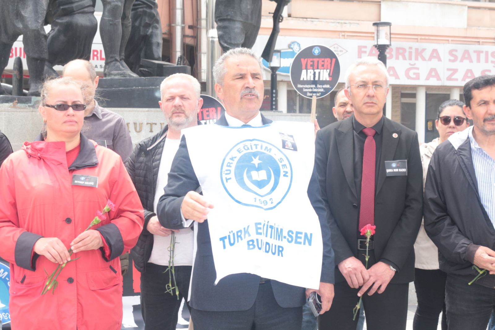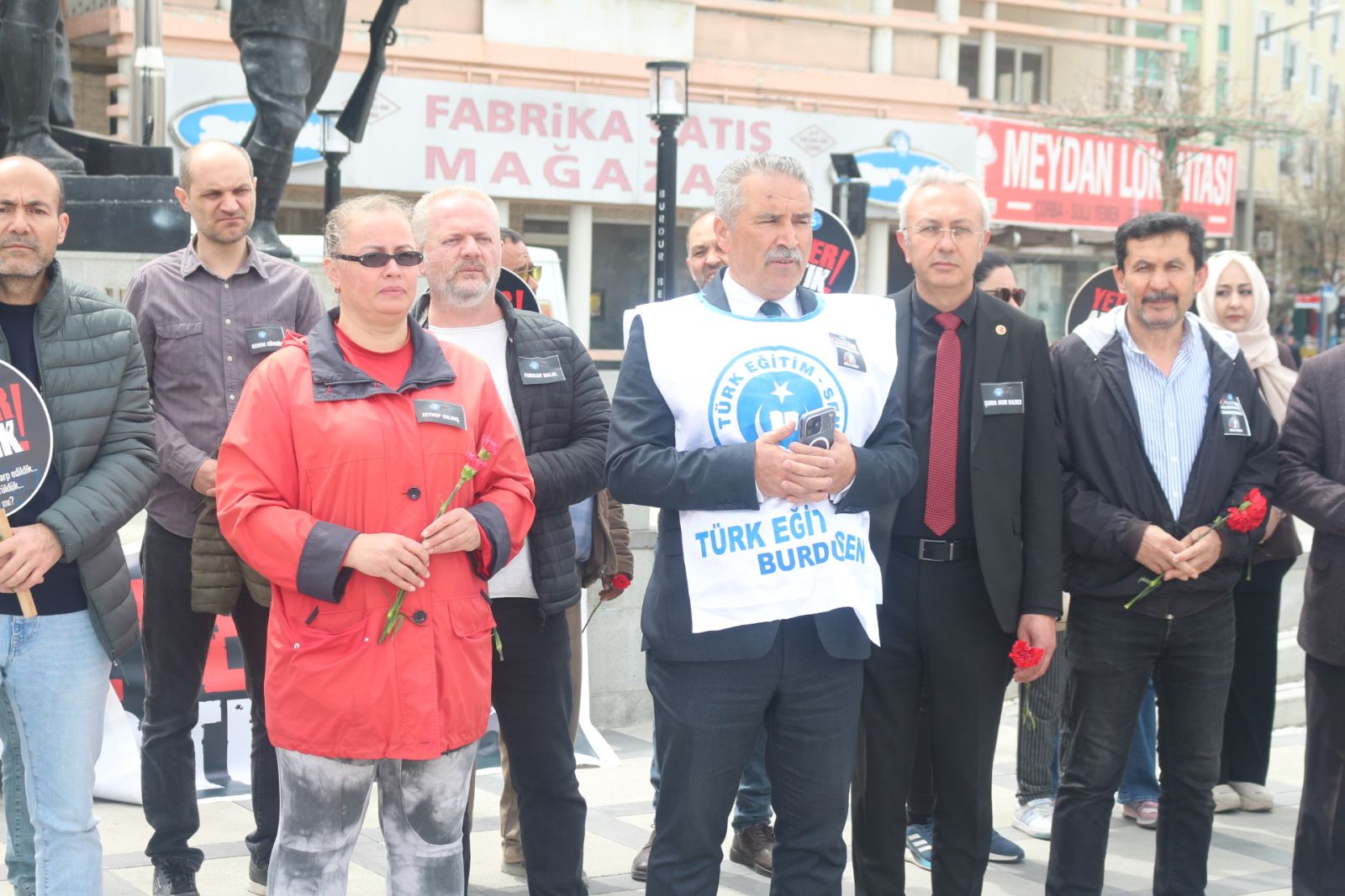 Türk Eğitim-Sen Burdur Şubesi tarafından Şanlıurfa Siverek ve Kahramanmaraş’ta okullarda hayatını kaybedenler ile çeşitli illerde öldürülen öğretmenlere dikkat çekmek için 17 Nisan 2026 Cuma günü saat 12.00’de Cumhuriyet Meydanı’nda, Atatürk Anıtı önünde bir program yaptı.