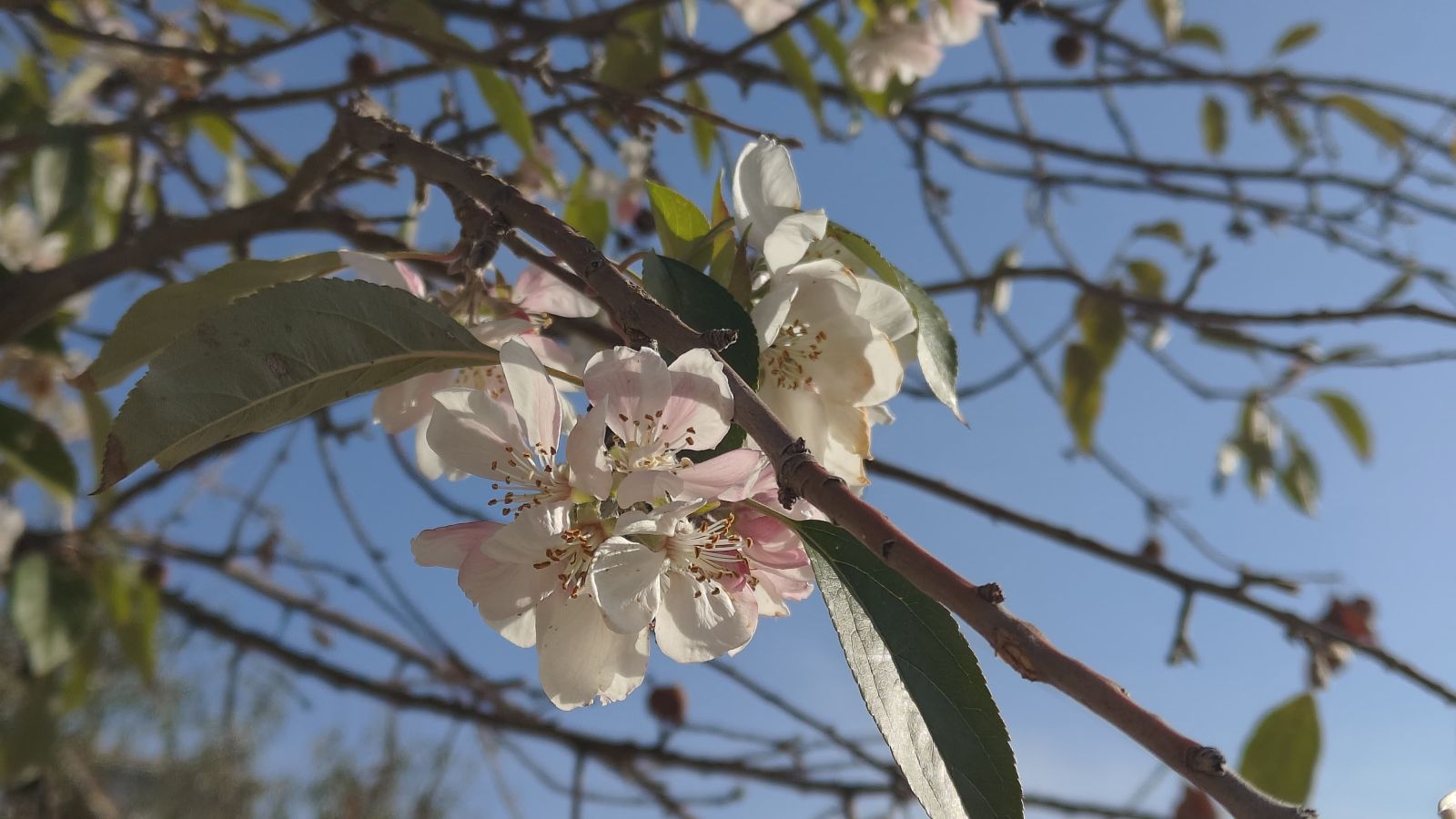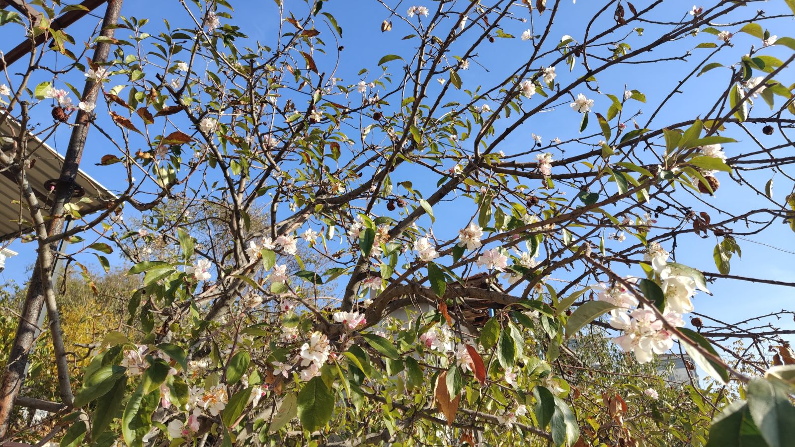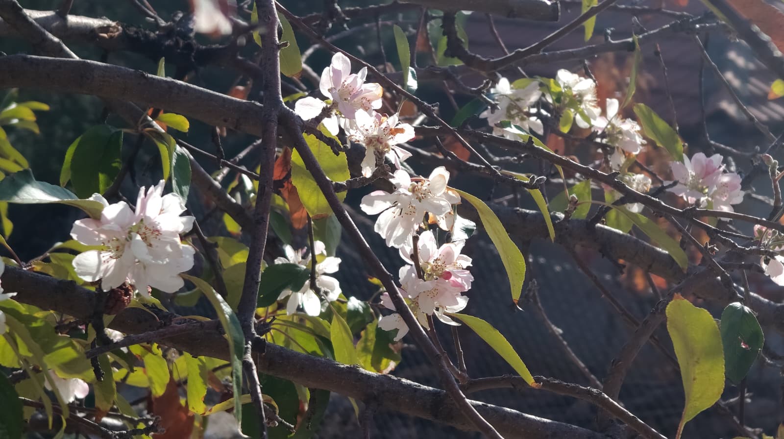 Sonbaharda hava sıcaklıklarının mevsim normallerinin üzerinde seyretmesiyle Alaattin Mahallesi'nde beton bir duvarın yanında yetişen elma ağacında çiçek açtığı gözlendi.