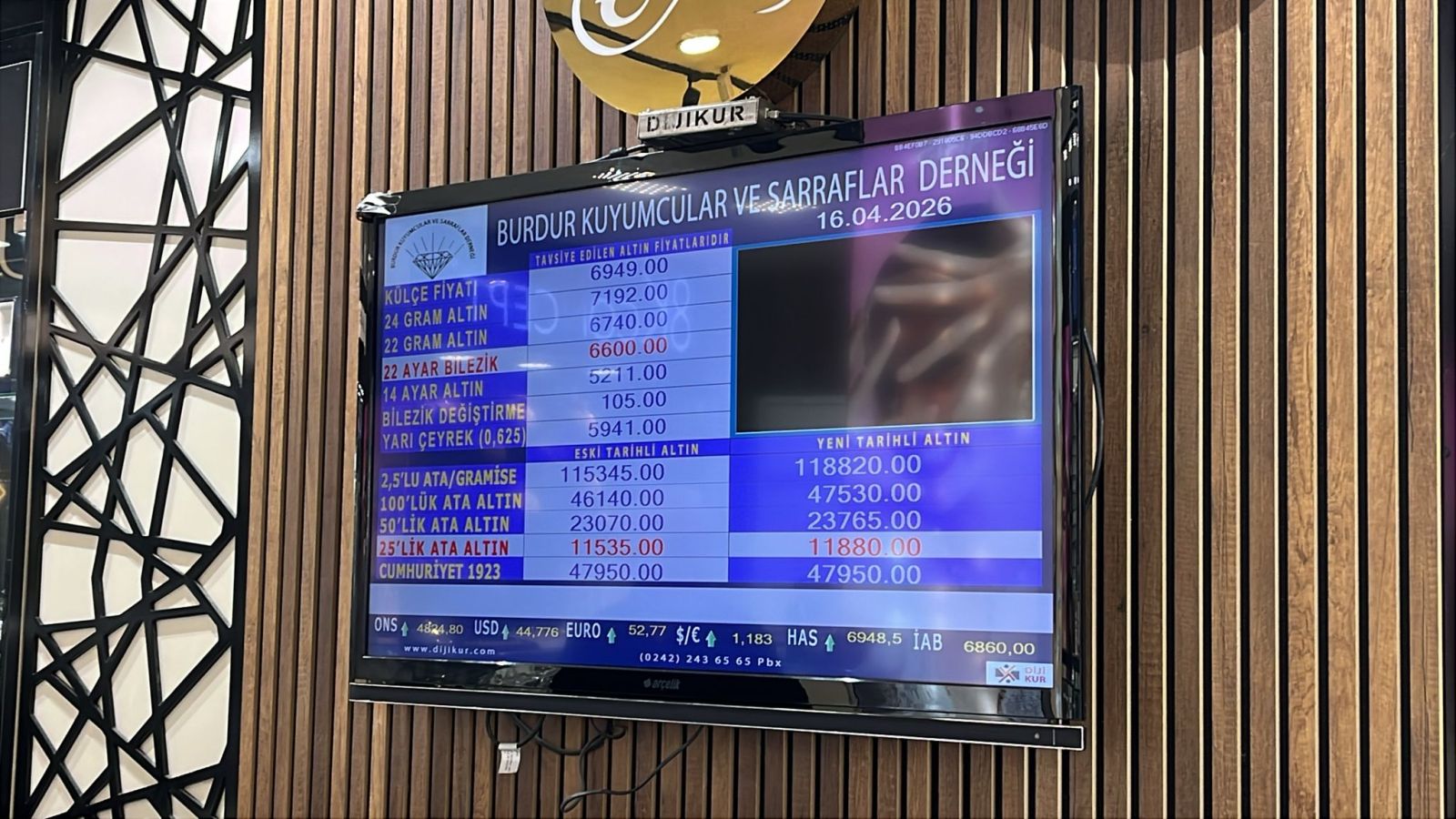 Burdur Kuyumcular ve Sarraflar Derneği tarafından 16 Nisan 2026 Perşembe günü saat 09.00 itibarıyla güncel altın fiyatları şu şekilde: