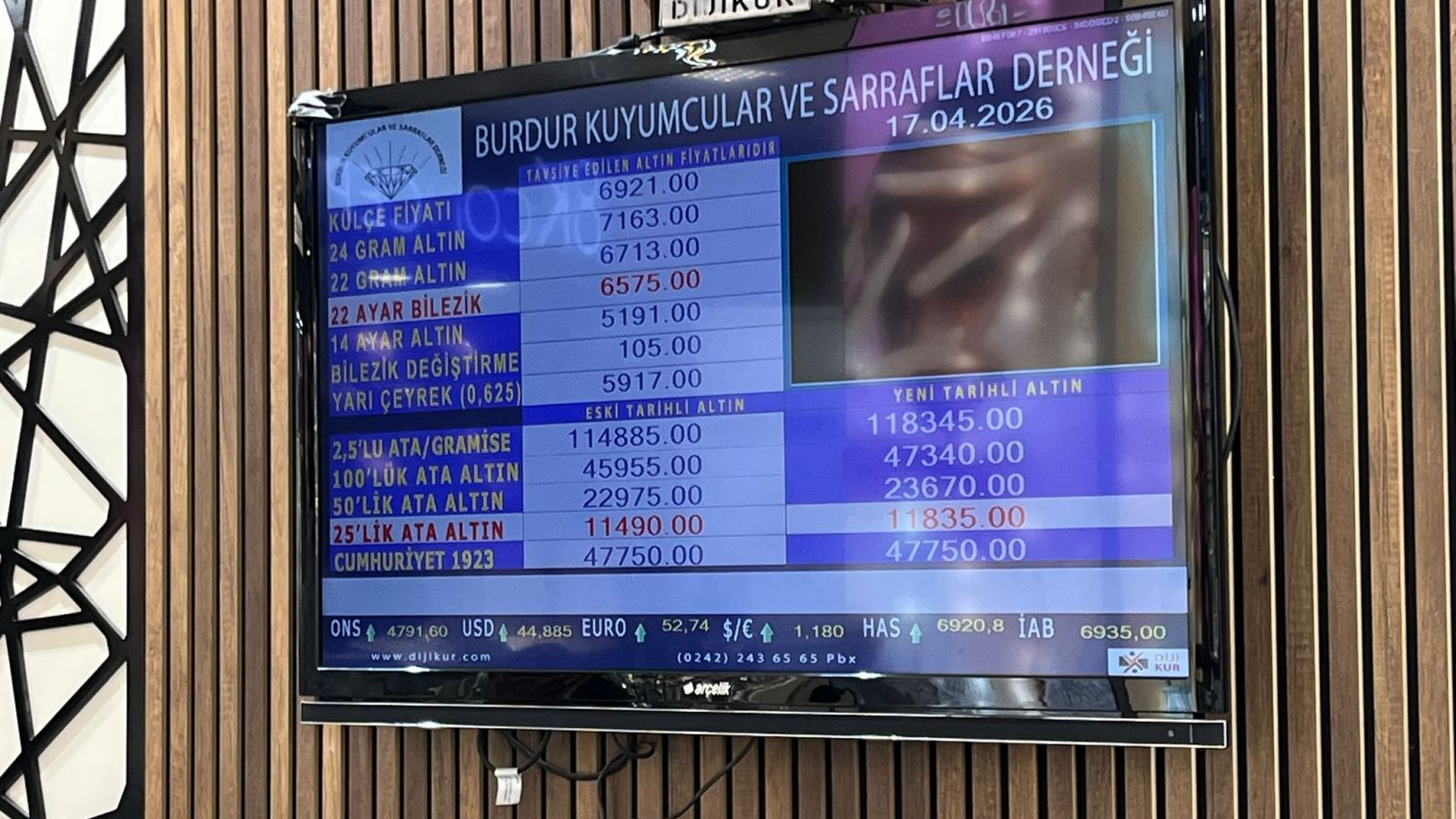 Burdur Kuyumcular ve Sarraflar Derneği tarafından 17 Nisan 2026 Cuma günü saat 09.00 itibarıyla güncel altın fiyatları şu şekilde: