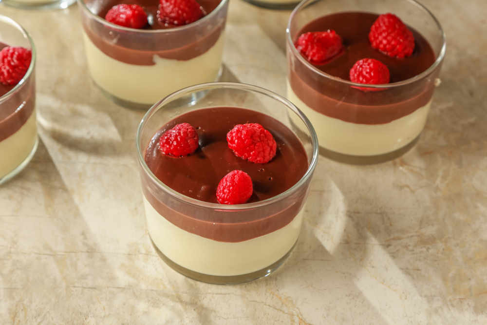 Soğuyan tatlıların üzerine frambuaz taneleri serpiştirip servis edin.