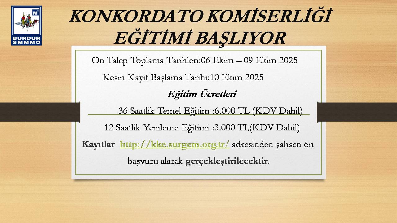 BURDUR’DA KONKORDATO KOMİSERLİĞİ EĞİTİMİ BAŞLIYOR