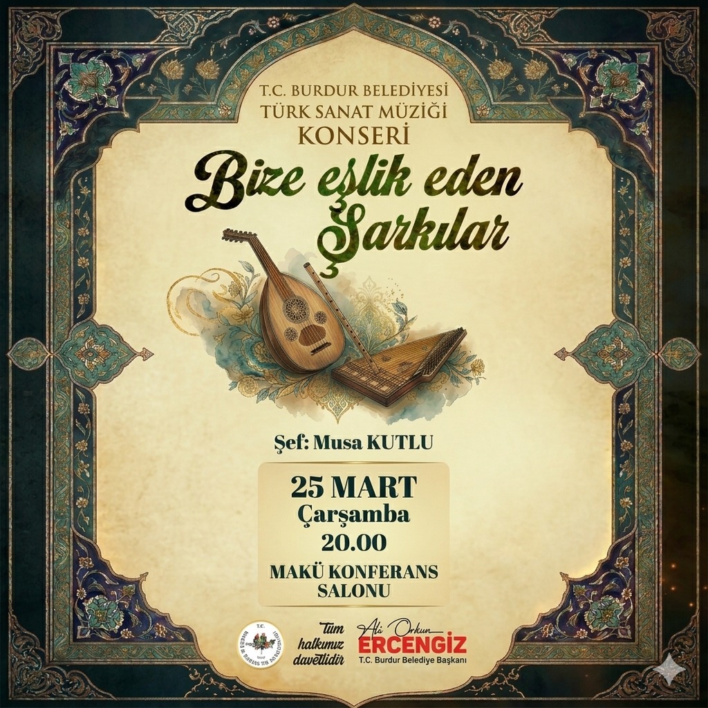 T.C. Burdur Belediyesi tarafından düzenlenen etkinlik, 25 Mart 2026 Çarşamba günü saat 20.00’de MAKÜ Konferans Salonu’nda gerçekleşecek.