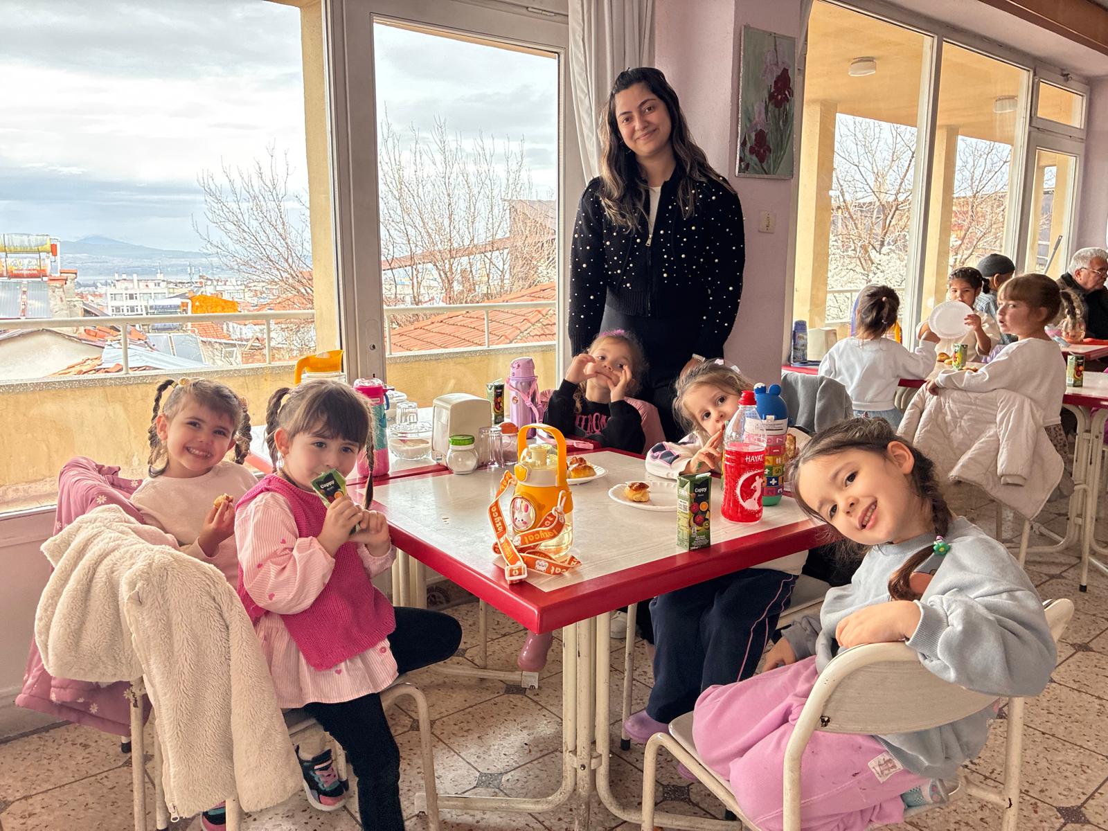 Anaokulu Müdürü Sevcan Erkazancı Ulukuş, ziyarete ilişkin yaptığı açıklamada, “Öğrencilerimizle birlikte buraya, yaşlılarımızla güzel anılar biriktirmek için geldik” ifadelerini kullandı.