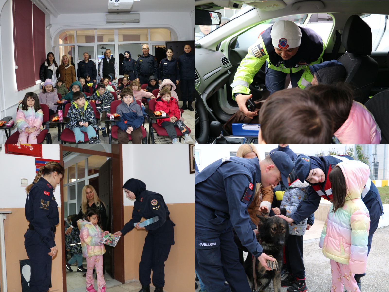 Minik öğrencilere, Trafik Jandarması ve Olay Yeri İnceleme Timleri tarafından kullanılan araç ve ekipmanlar stantlarda tanıtılırken, Köpek Timleri tarafından gösteri yapıldı. Aynı zamanda öğrenciler için Tim Jandarma çizgi filmi gösterildi.