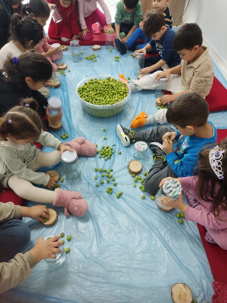 Geçtiğimiz Perşembe günü gerçekleştirilen etkinlikte minikler, zeytin kurmayı öğrendi hem de birlikte vakit geçirmenin keyfini çıkardı.
