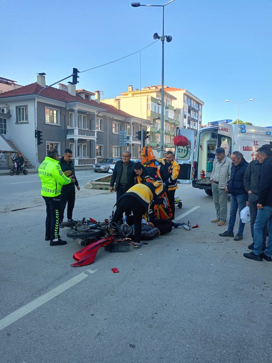 Burdur'un Bucak ilçesinde otomobille motosiklettin çarpışması sonucu meydana gelen kazada motosiklet sürücüsü yaralandı.
