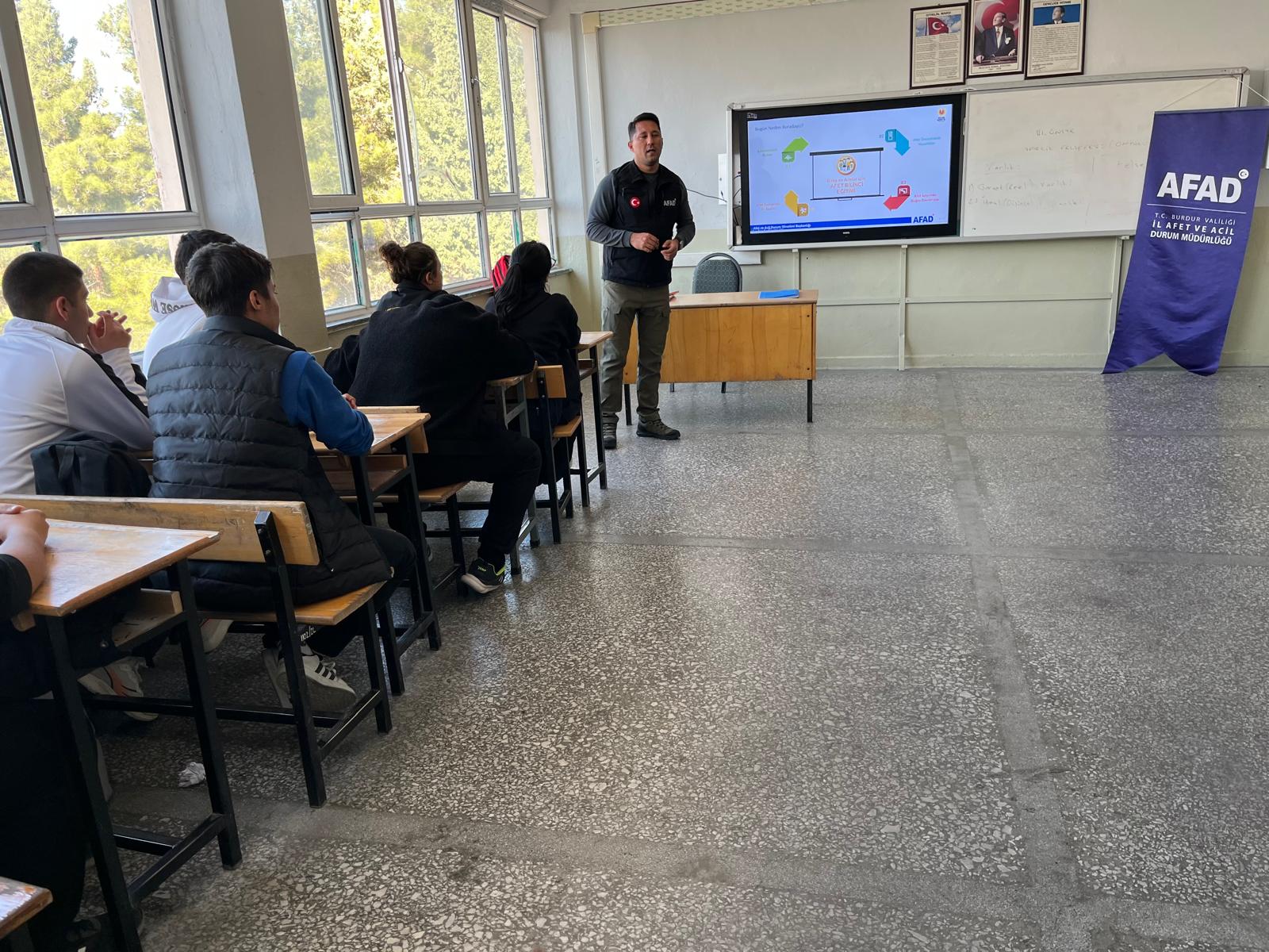 Burdur Mesleki ve Teknik Anadolu Lisesi, Afete Hazır Okul projesi kapsamında öğrencilerine Afet Farkındalık Eğitimi düzenledi.