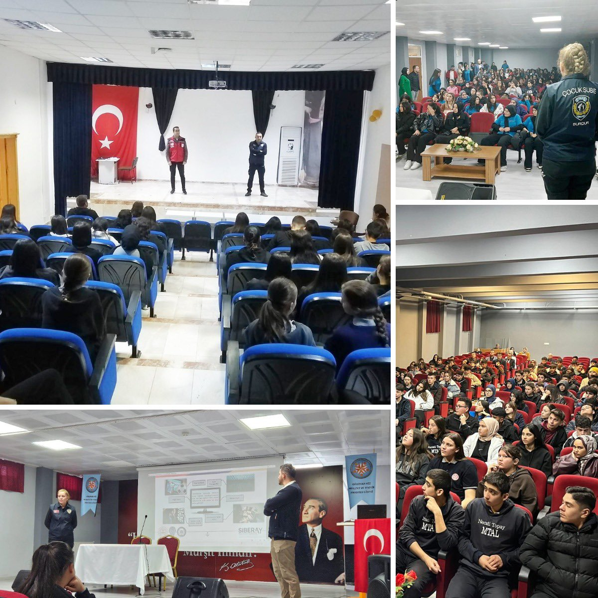 Bu kapsamda Bucak Mesleki Eğitim Merkezi (MESEM), Bucak Oğuzhan Kız Mesleki ve Teknik Anadolu Lisesi, Bucak Necati Topay Ticaret Mesleki Teknik Anadolu Lisesi, Karamanlı Mesleki ve Teknik Anadolu Lisesi, Karamanlı Anadolu Lisesi'nde eğitim gören öğrenciler, Çocuk Şube Müdürlüğü ile Siber Suçlarla Mücadele Şube Müdürlüğü koordinasyonunda önemli konularda bilgilendirildi.