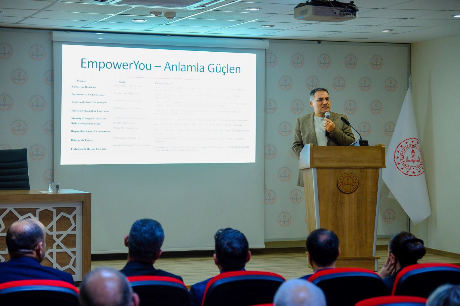 Katılımcı okul müdürlerine, öğrencilerin ruh sağlığını korumaya yönelik uygulamalar ve erken müdahale süreçleri hakkında kapsamlı bilgiler aktarıldı.