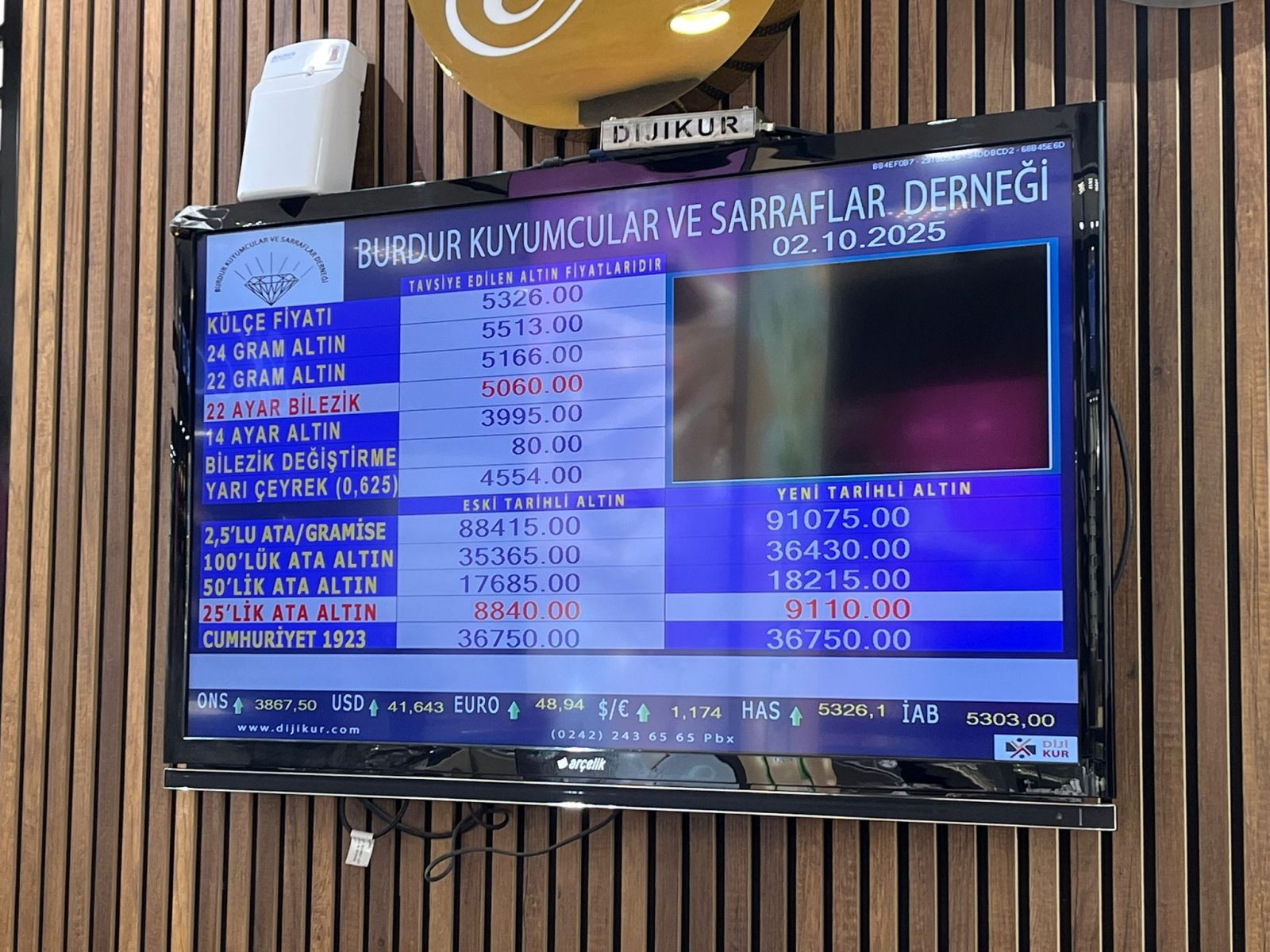 Burdur Kuyumcular ve Sarraflar Derneği tarafından 2 Ekim 2025 Perşembe günü saat 09.00 itibarıyla açıklanan güncel altın fiyatları belli oldu.