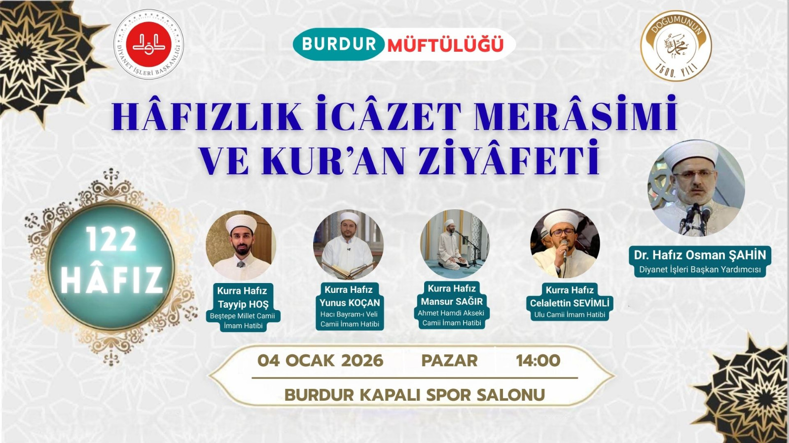 Burdur, tarihinde bir ilke imza atıyor. 122 genç hafız, 4 Ocak 2026 Pazar günü düzenlenecek görkemli bir törenle icazetnamelerini alacak.