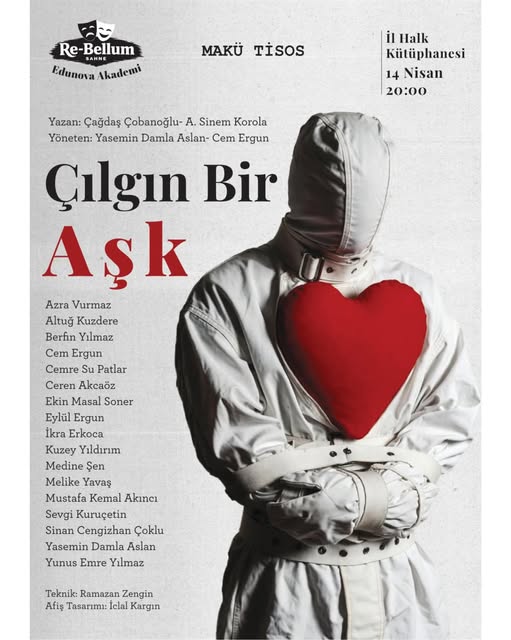 Festival kapsamında sahnelenecek “Çılgın Bir Aşk” adlı tiyatro oyunu, 14 Nisan saat 20.00’de İl Halk Kütüphanesi’nde izleyiciyle buluşacak. Yetişkin izleyiciye yönelik hazırlanan gösterinin, farklı anlatım dili ve sahne yorumu ile dikkat çekmesi bekleniyor.