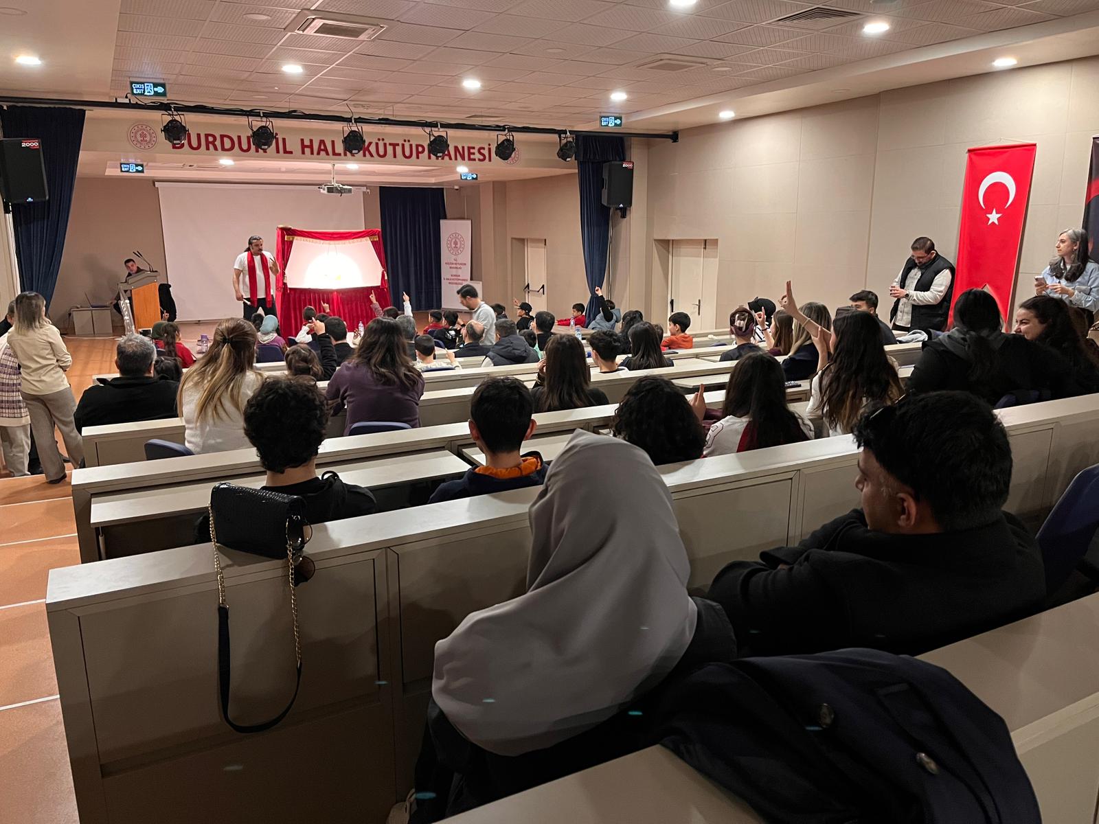 Festival etkinlikleri kapsamında bugün saat 14.00’te Burdur İl Halk Kütüphanesi Konferans Salonu’nda çocuklara özel Hacivat-Karagöz gölge oyunu sahnelendi. Türk tiyatro geleneğinin önemli unsurlarından biri olan bu gösteri, çocuklardan yoğun ilgi gördü. Eğlenceli anlatımı ve renkli sahneleriyle minik izleyicilere hem keyifli anlar yaşattı hem de kültürel değerleri tanıma fırsatı sundu.
