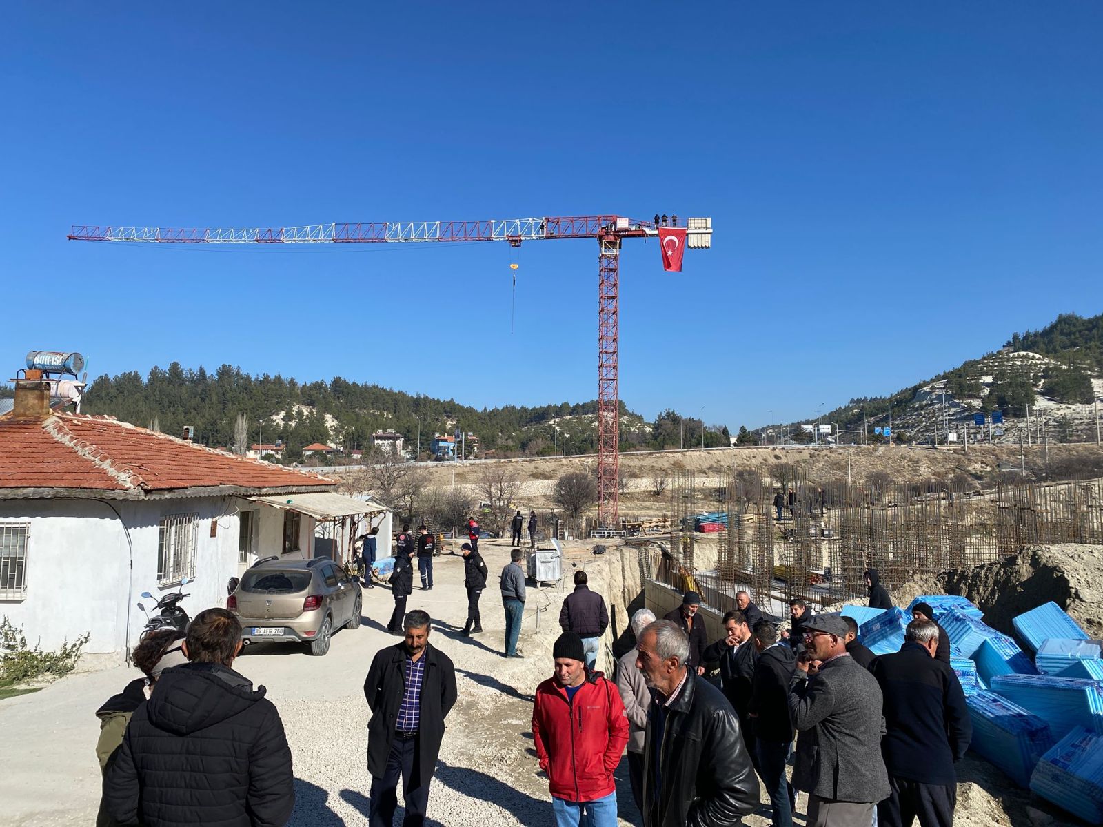 Olayın ardından bölgeye polis ve itfaiye ekipleri sevk edilirken, işçilerin vinçteki bekleyişi devam ediyor.