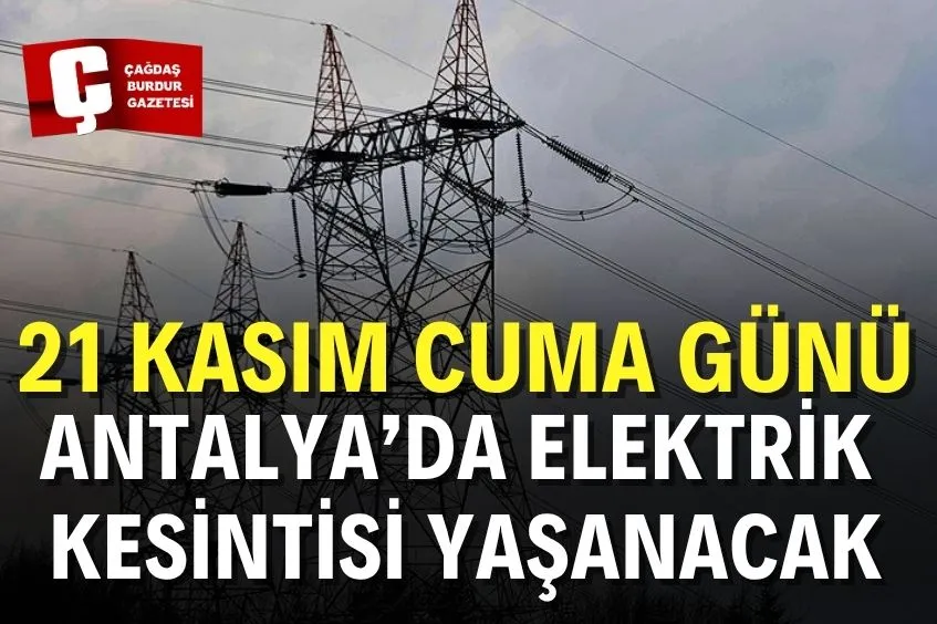 "Etkilenen cadde/sokak: Burdur, Merkez, Akyayla Köyü Cami Mahallesi, Bereket Köyü Köyün Kendisi Mahallesi, Kökez Köyü Köyün Kendisi Mahallesi, Soğanlı Köyü Köyün Kendisi Mahallesi ve Yeşildağ Köyü Köyün Kendisi Mahallesi bölgelerinde, 21.11.2025 tarihinde 09:30 - 16:30 saatleri arasında yatırım çalışması sebebiyle, iş sağlığı ve güvenliği gözetilerek elektrik kesintisi yapılacaktır."