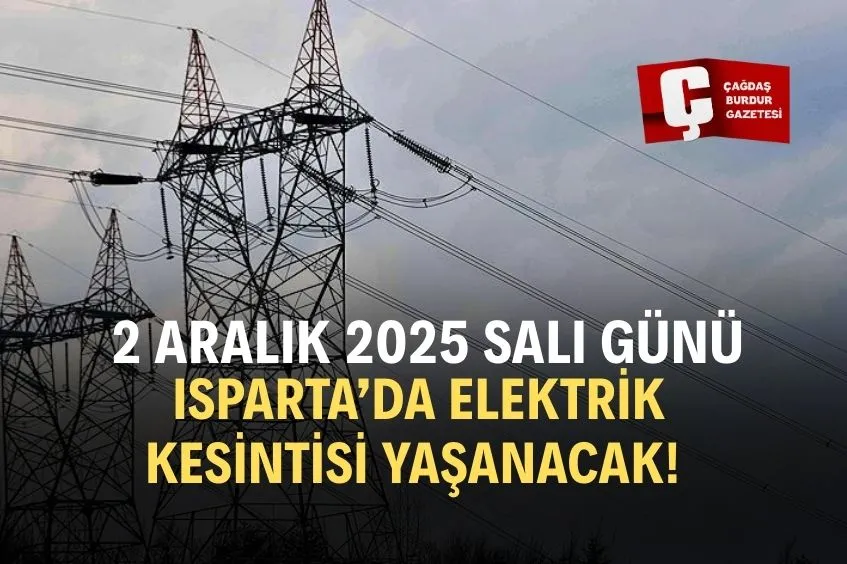 Burdur’da 2 Aralık 2025 Salı günü planlanan elektrik kesintisi, belirli saatler içinde merkezi ve ilçeleri etkileyecek. İşte kesintiden etkilenecek mahalle, ilçe ve köyler: