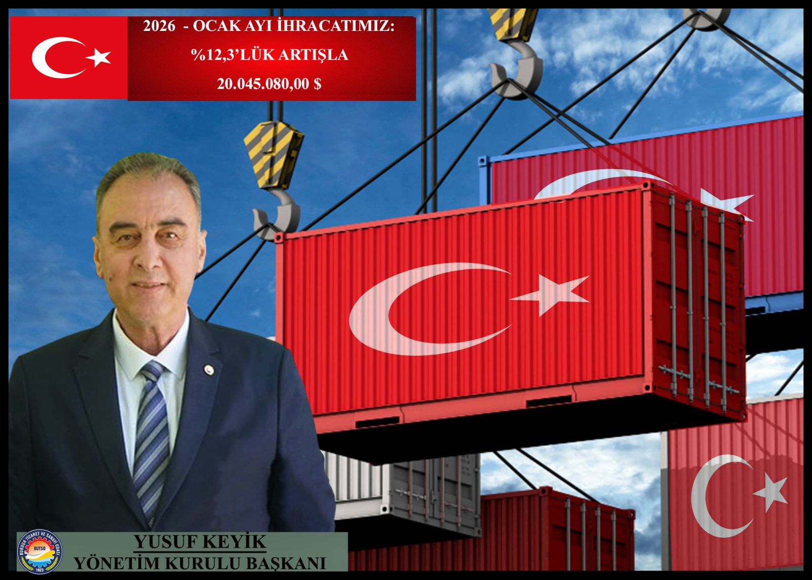 BUTSO YÖNETİM KURULU BAŞKANI YUSUF KEYİK: “2026 YILI OCAK AYI İHRACATIMIZ %12,3’LÜK ARTIŞLA 20 MİLYON 045 BİN 080 DOLAR”