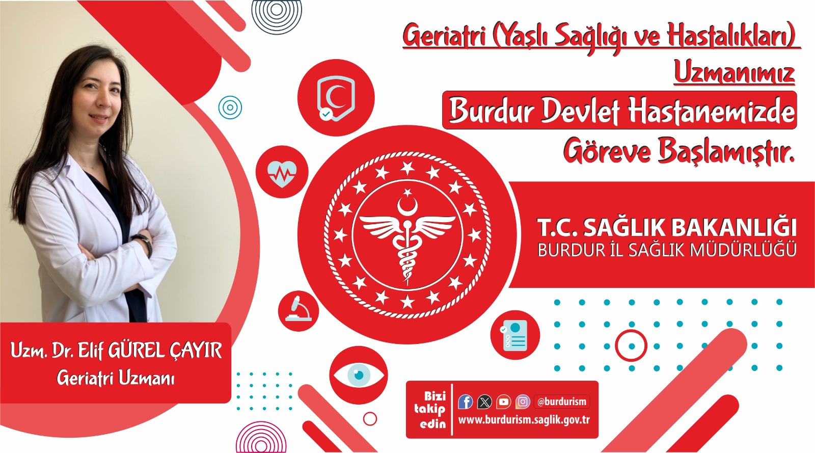 Bu kapsamda şehrimizin tecrübe hazinesi olan yaşlılarımıza daha kaliteli ve spesifik bir sağlık hizmeti sunmak amacıyla; Burdur Devlet Hastanesi bünyesinde Geriatri (Yaşlı Sağlığı ve Hastalıkları) Uzmanı Dr. Elif Gürel Çayır hasta kabulüne başladı.