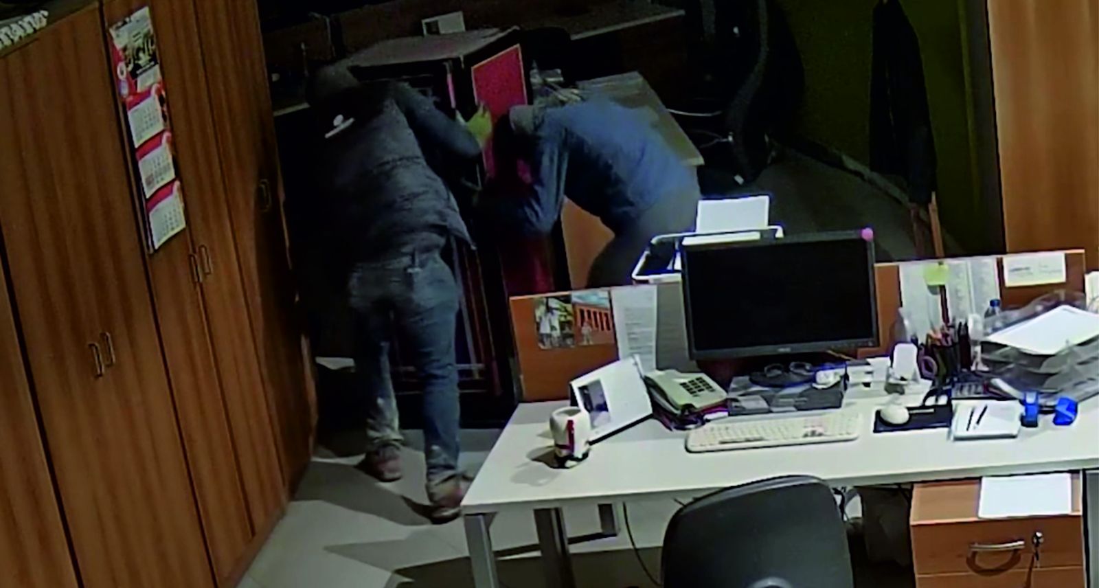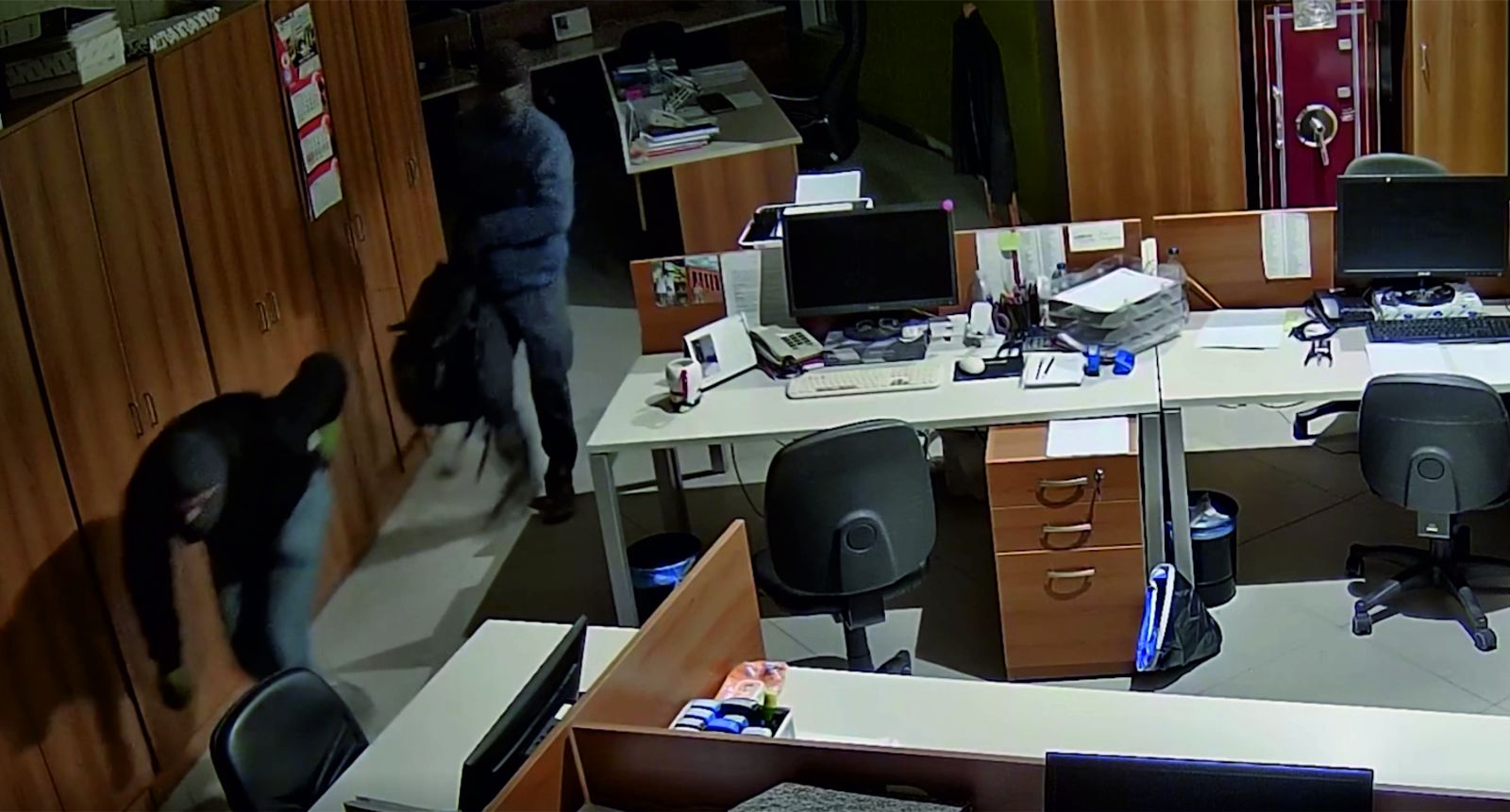 Yaklaşık 2,5 saat ofiste kalan şüphelilerin, gizli bölmedeki çelik kasaları spiral makinesiyle kestikleri, kesme sırasında ısınmayı önlemek için kovalarla taşıdıkları suyu kullandıkları, su taşımakta zorlanınca kasalardan birini tuvalette kestikleri saptandı. İki kasadan alınan yaklaşık 2 milyon avronun poşet ve sırt çantalarına konulduğu, üçüncü kasaya ise dokunulmadığı belirlendi.