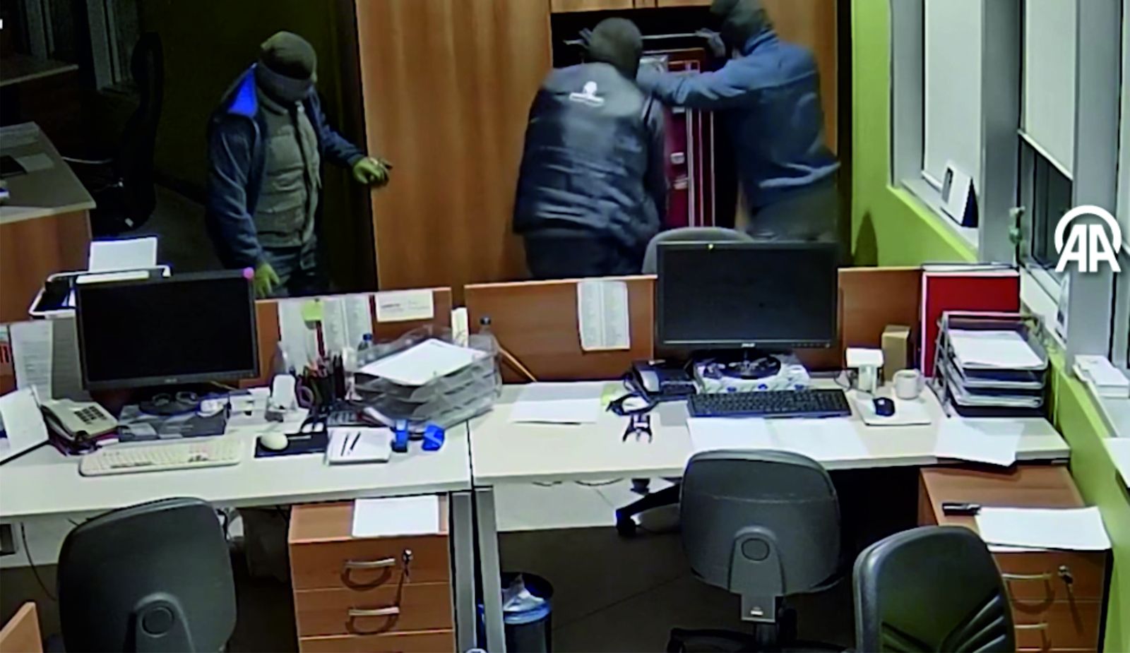 Şüphelilerin ayrıca firmanın işçi yeleklerini giyerek kamufle oldukları, aydınlatmayı kestikten sonra yönetim ofisinin çatısına tırmanıp levye yardımıyla camı çıkararak içeri girdikleri belirlendi.