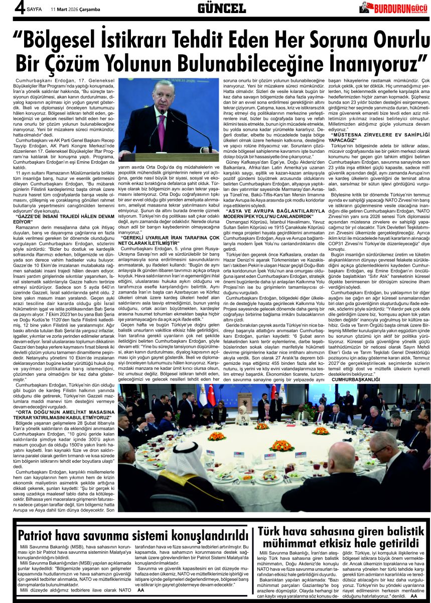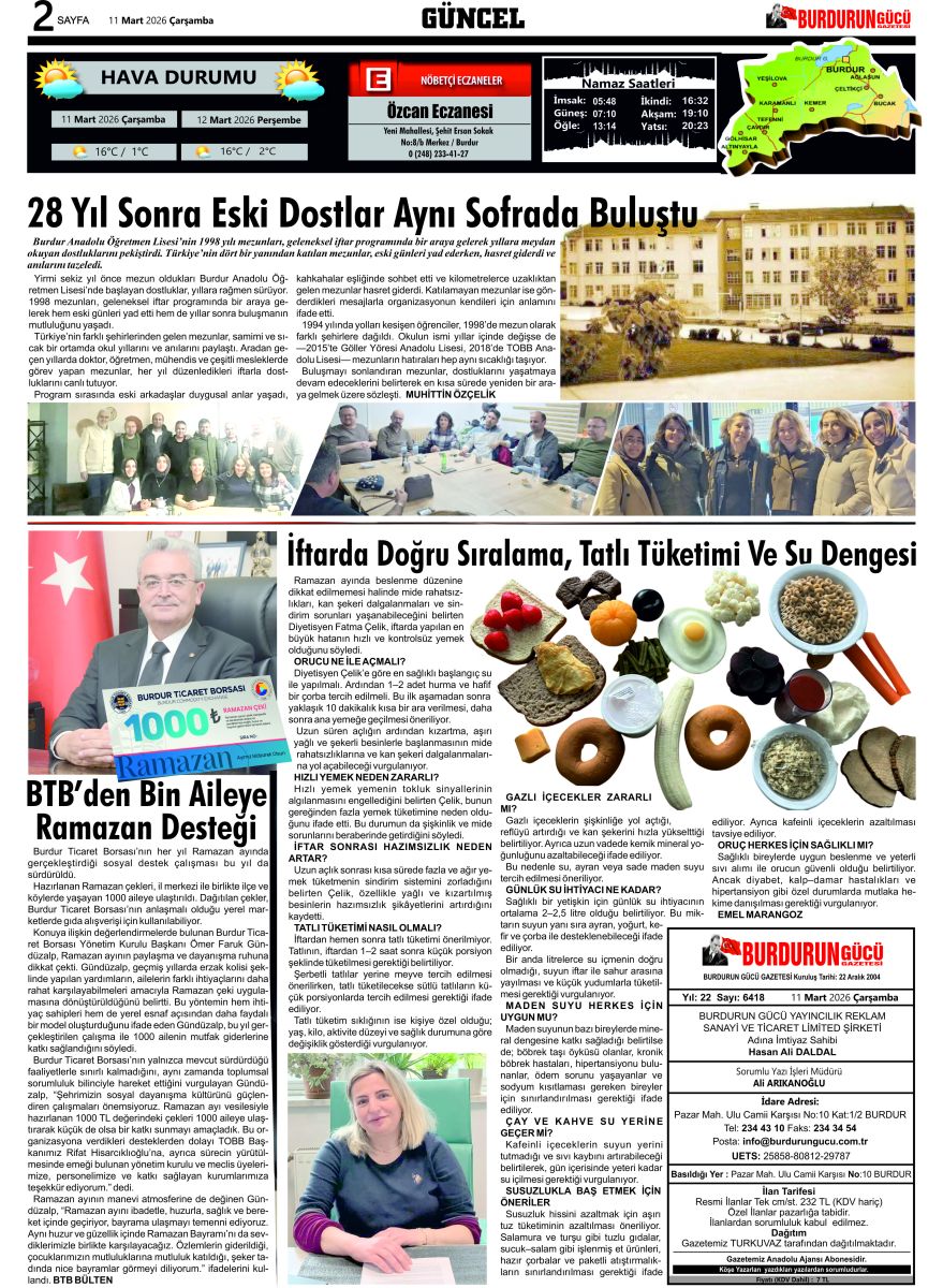 BURDURUN GÜCÜ 11 MART 2026 TARİHLİ SAYISI
