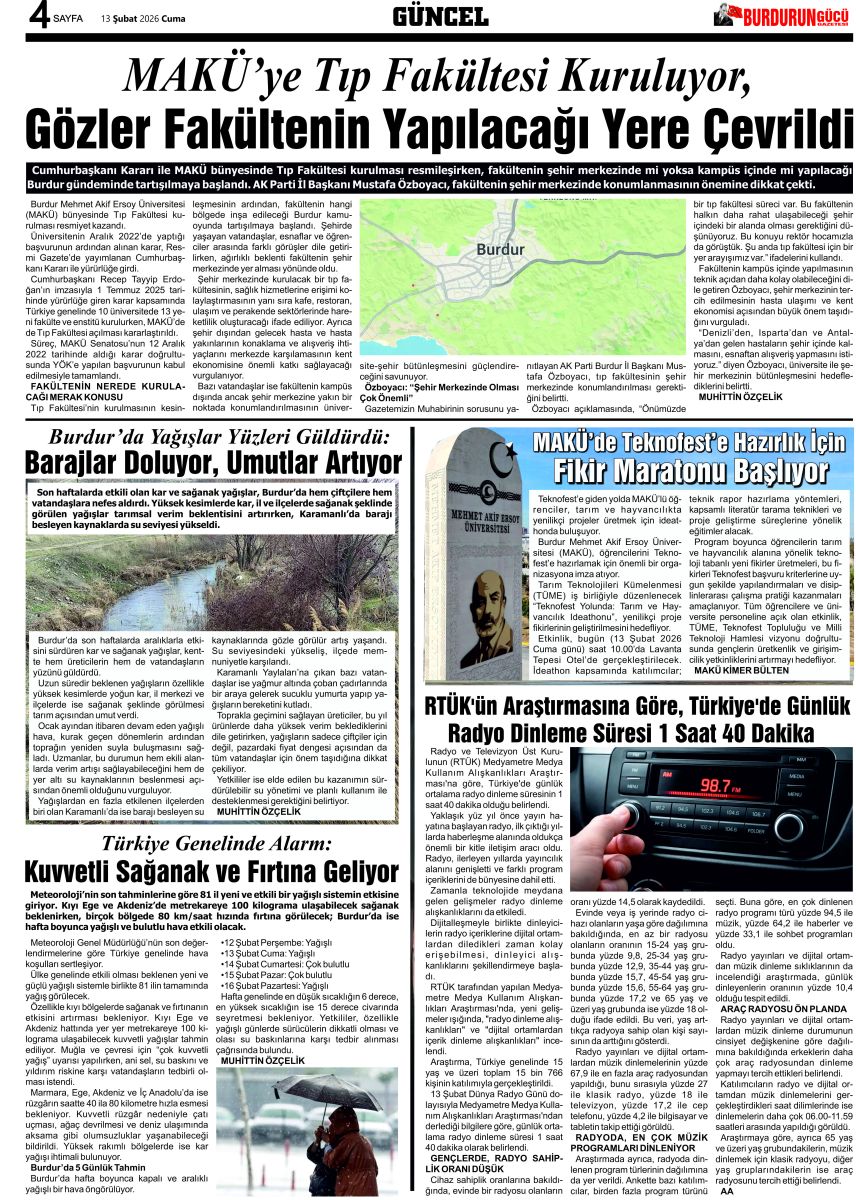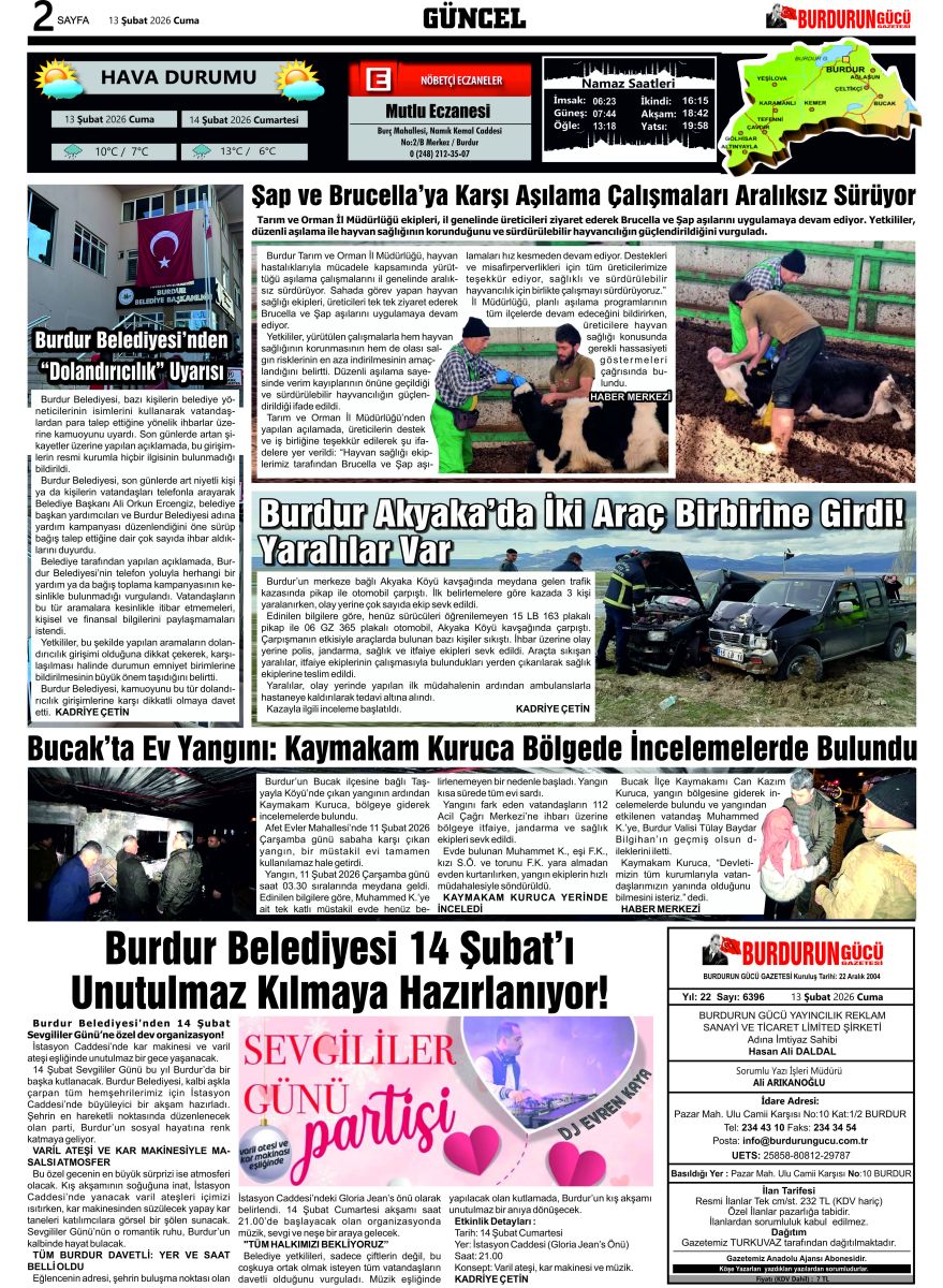 BURDURUN GÜCÜ 13 ŞUBAT 2026 TARİHLİ SAYISI
