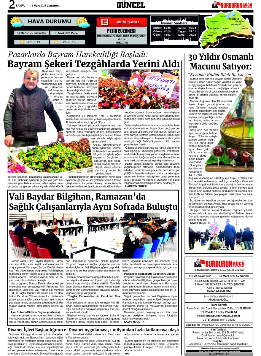 BURDURUN GÜCÜ 14 MART 2026 TARİHLİ SAYISI