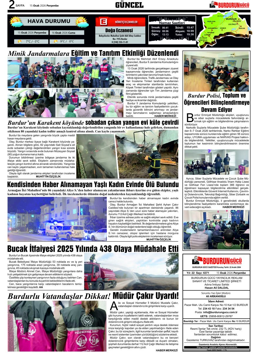 BURDURUN GÜCÜ 15 OCAK 2026 TARİHLİ SAYISI