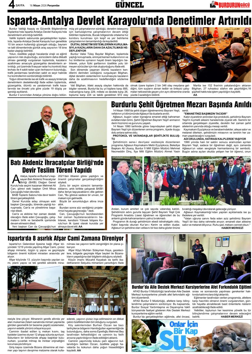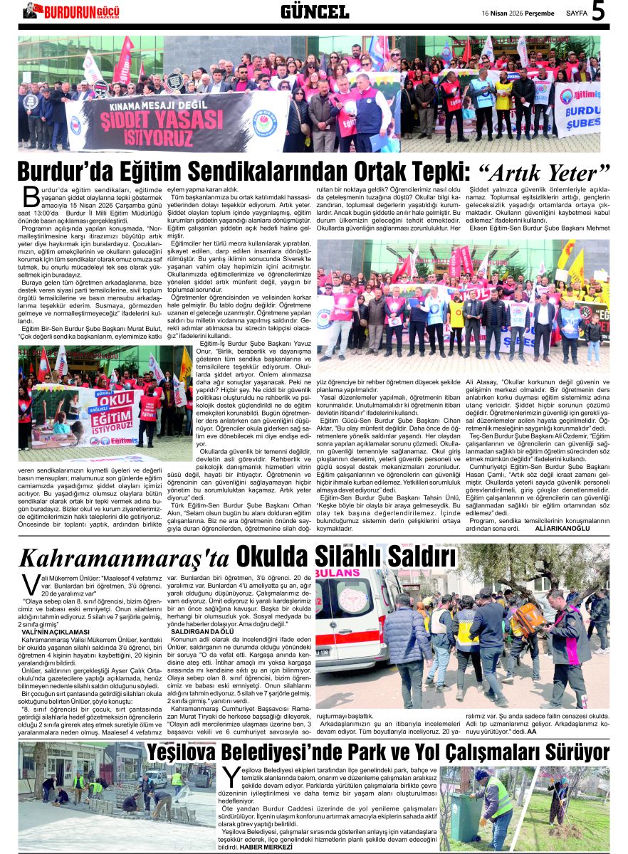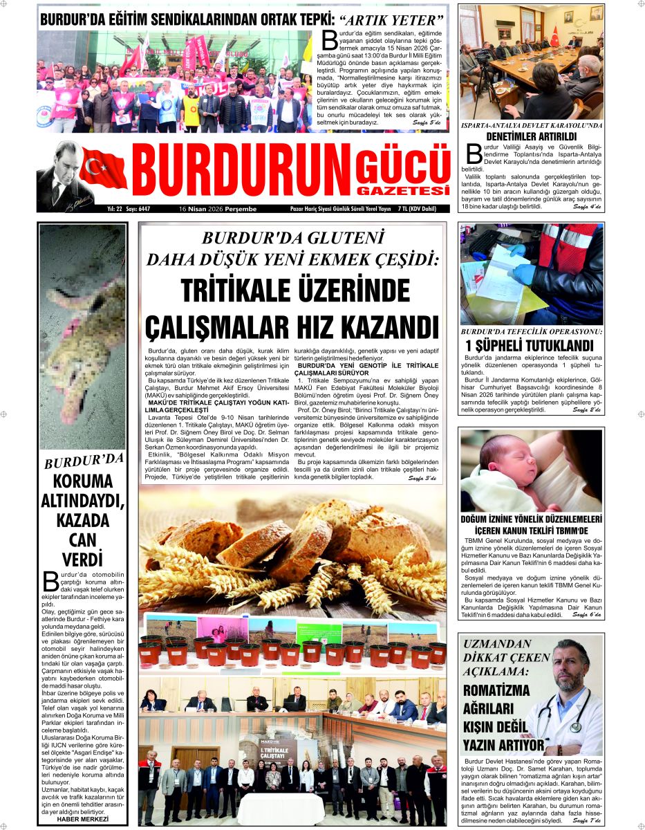 BURDURUN GÜCÜ 16 NİSAN 2026 TARİHLİ SAYISI