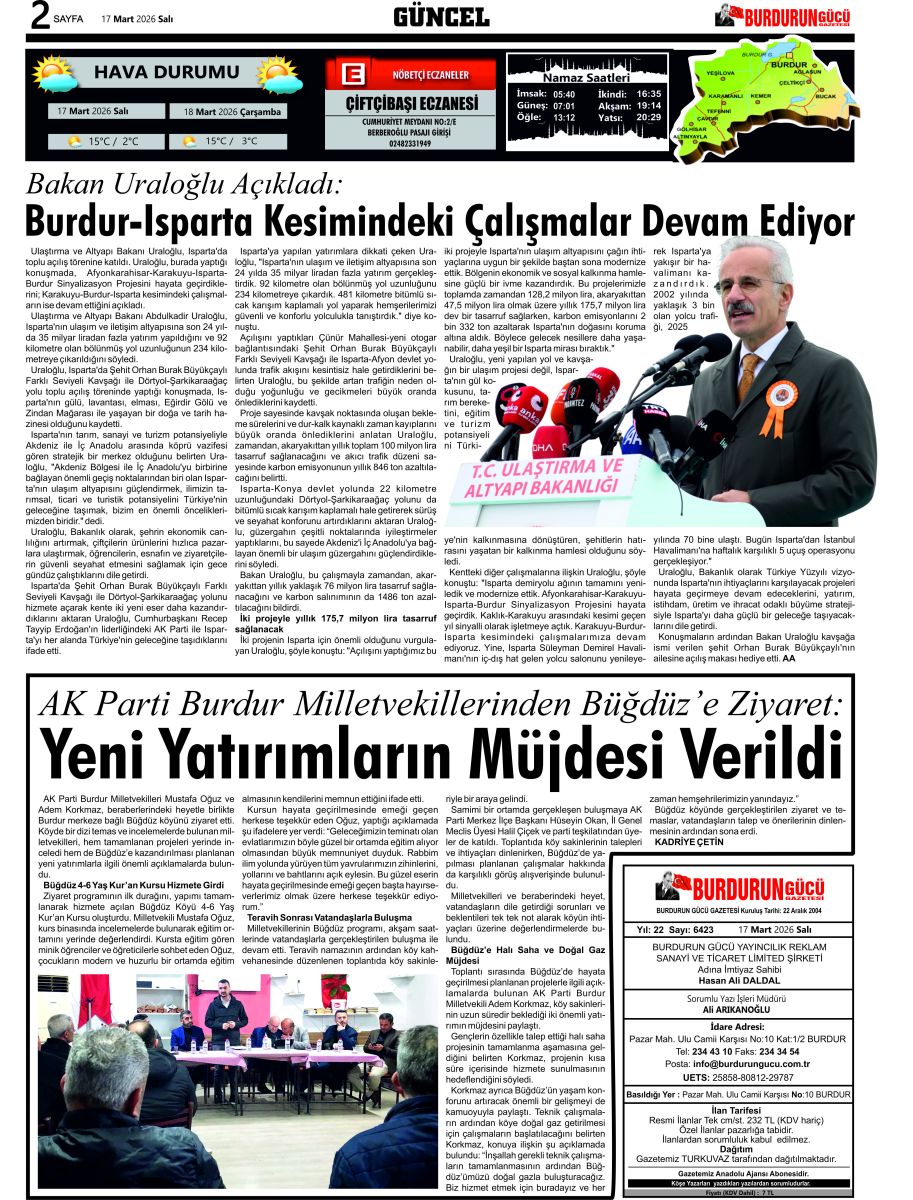 BURDURUN GÜCÜ 17 MART 2026 TARİHLİ SAYISI