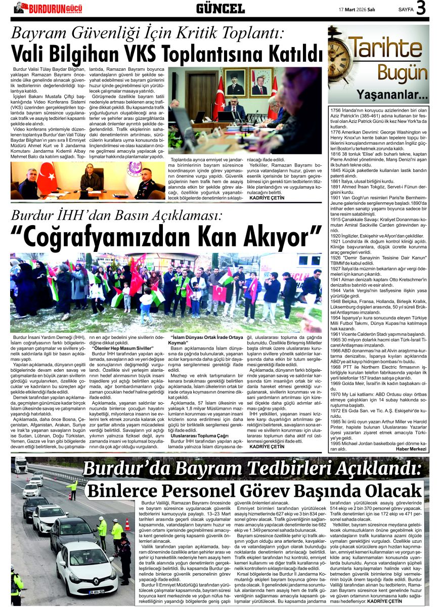 GAZETEMİZ 17 MART 2026 TARİHLİ SAYISI