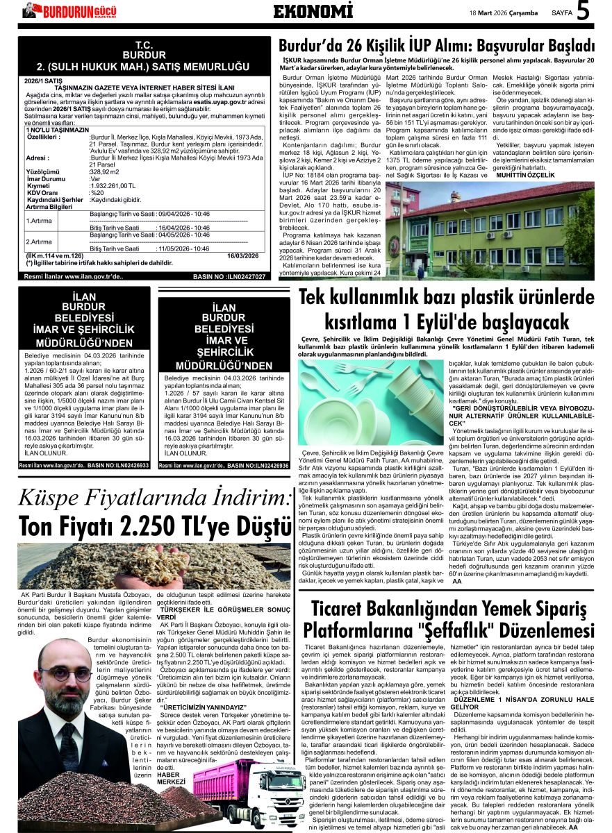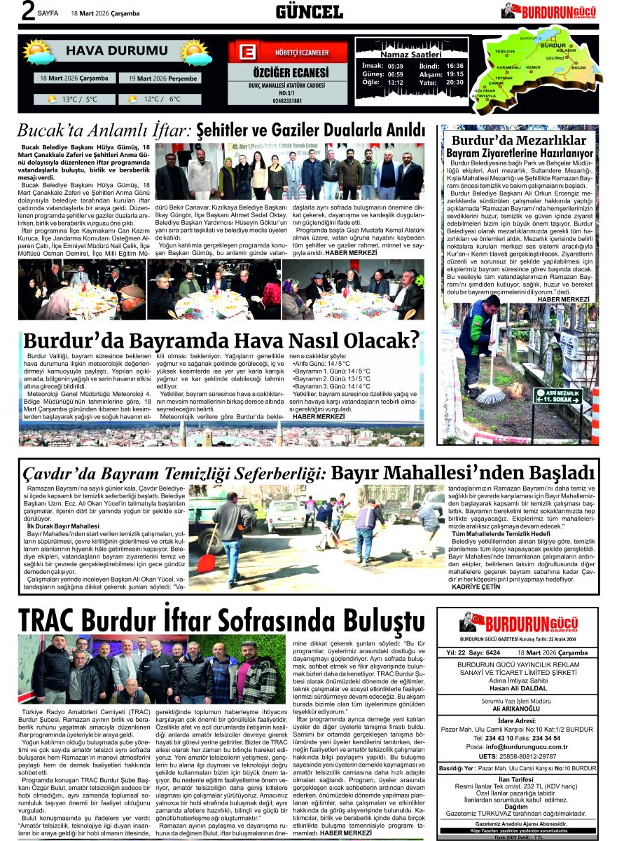 BURDURUN GÜCÜ 18 MART 2026 TARİHLİ SAYISI