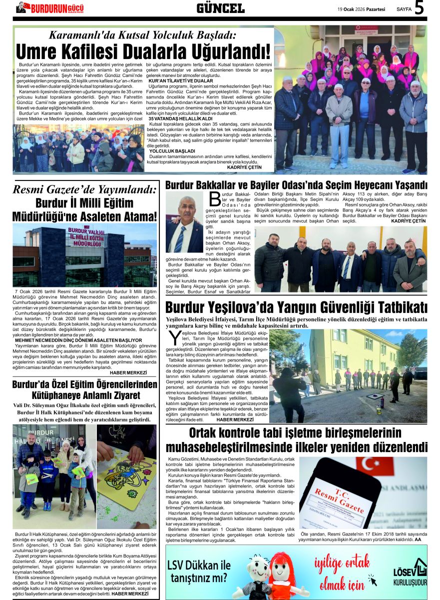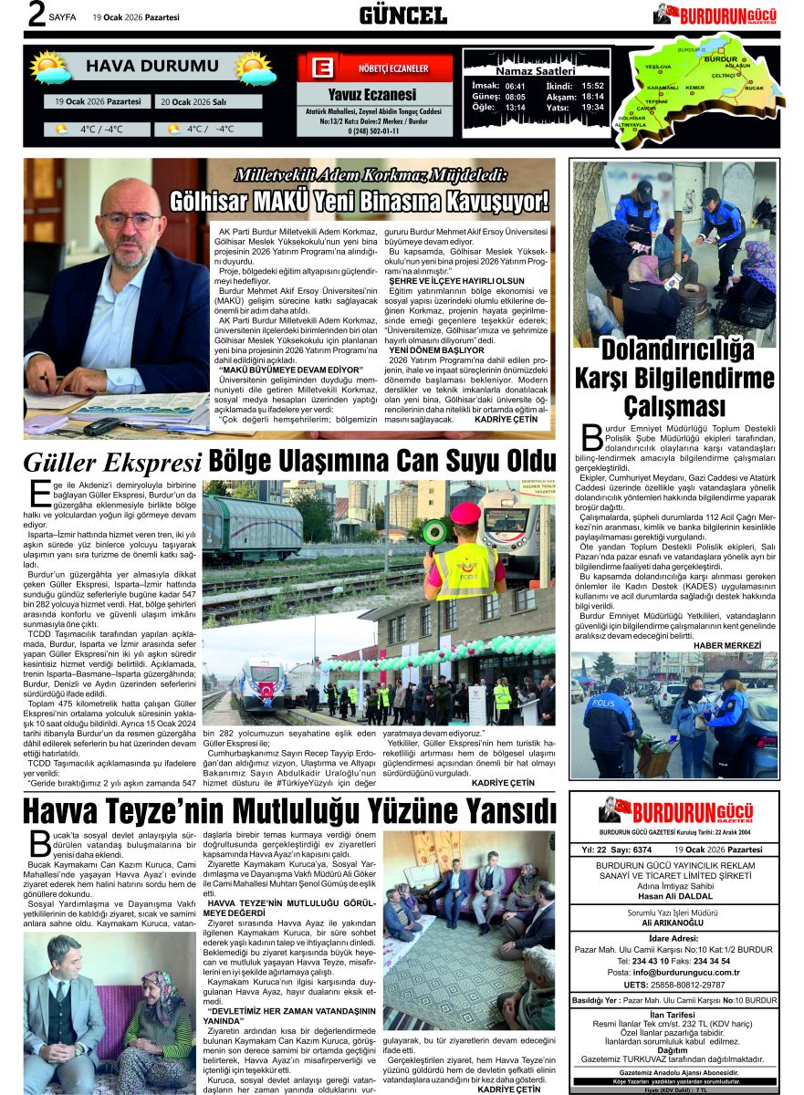 BURDURUN GÜCÜ 19 OCAK 2026 TARİHLİ SAYISI