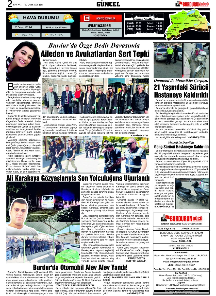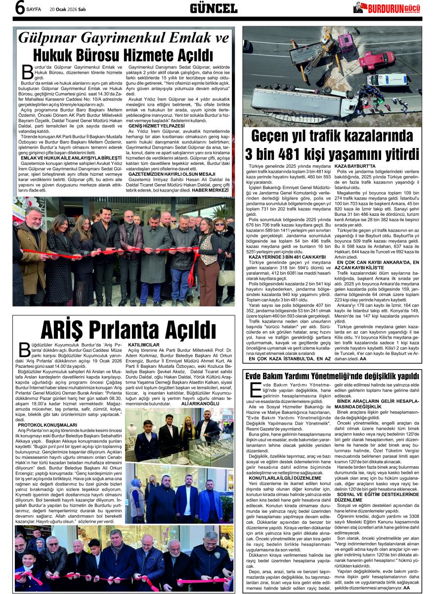 BURDURUN GÜCÜ 20 OCAK 2026 TARİHLİ SAYISI