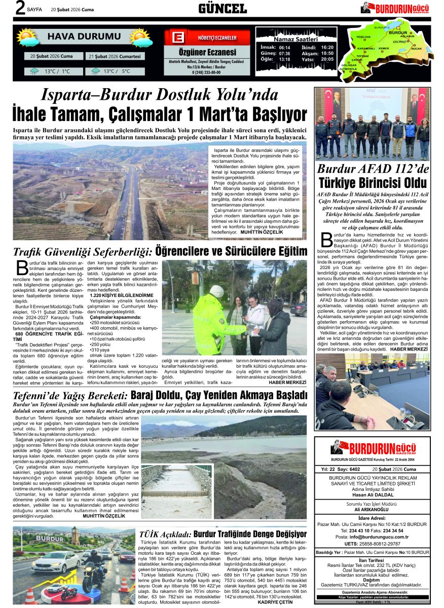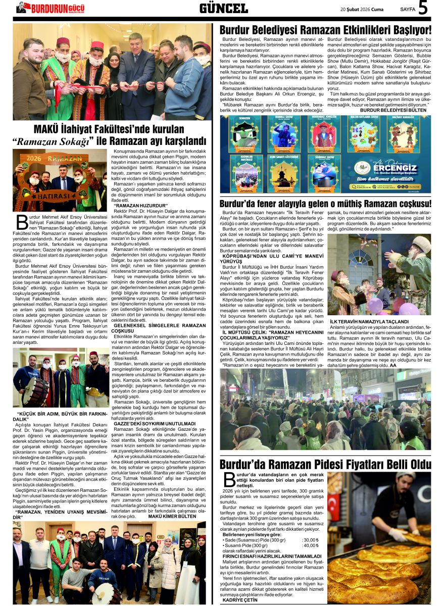 BURDURUN GÜCÜ 20 ŞUBAT 2026 TARİHLİ SAYISI