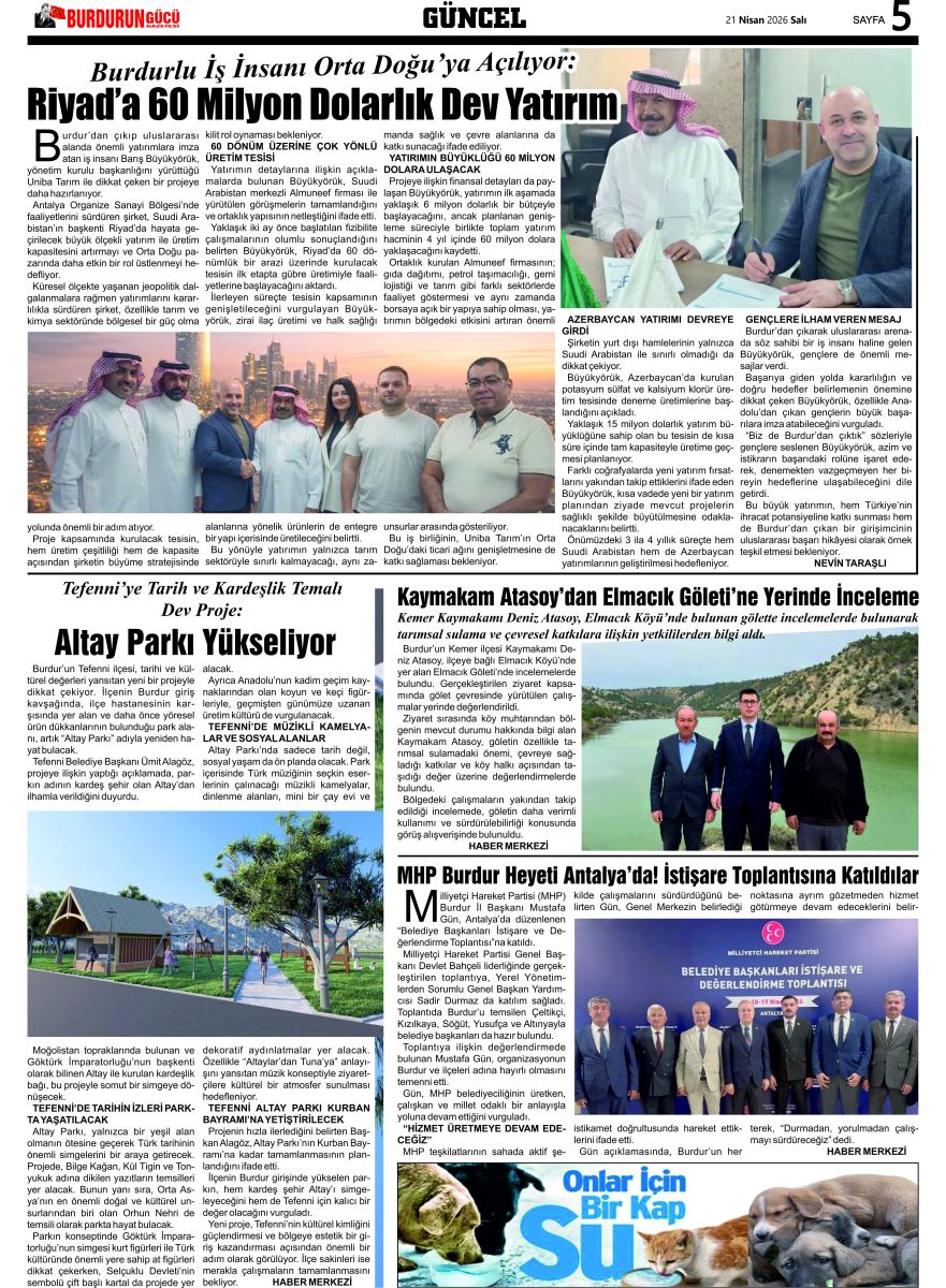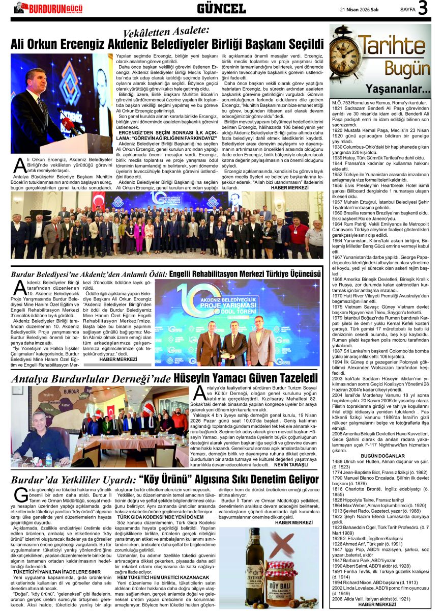 BURDURUN GÜCÜ 21 NİSAN 2026 TARİHLİ SAYISI