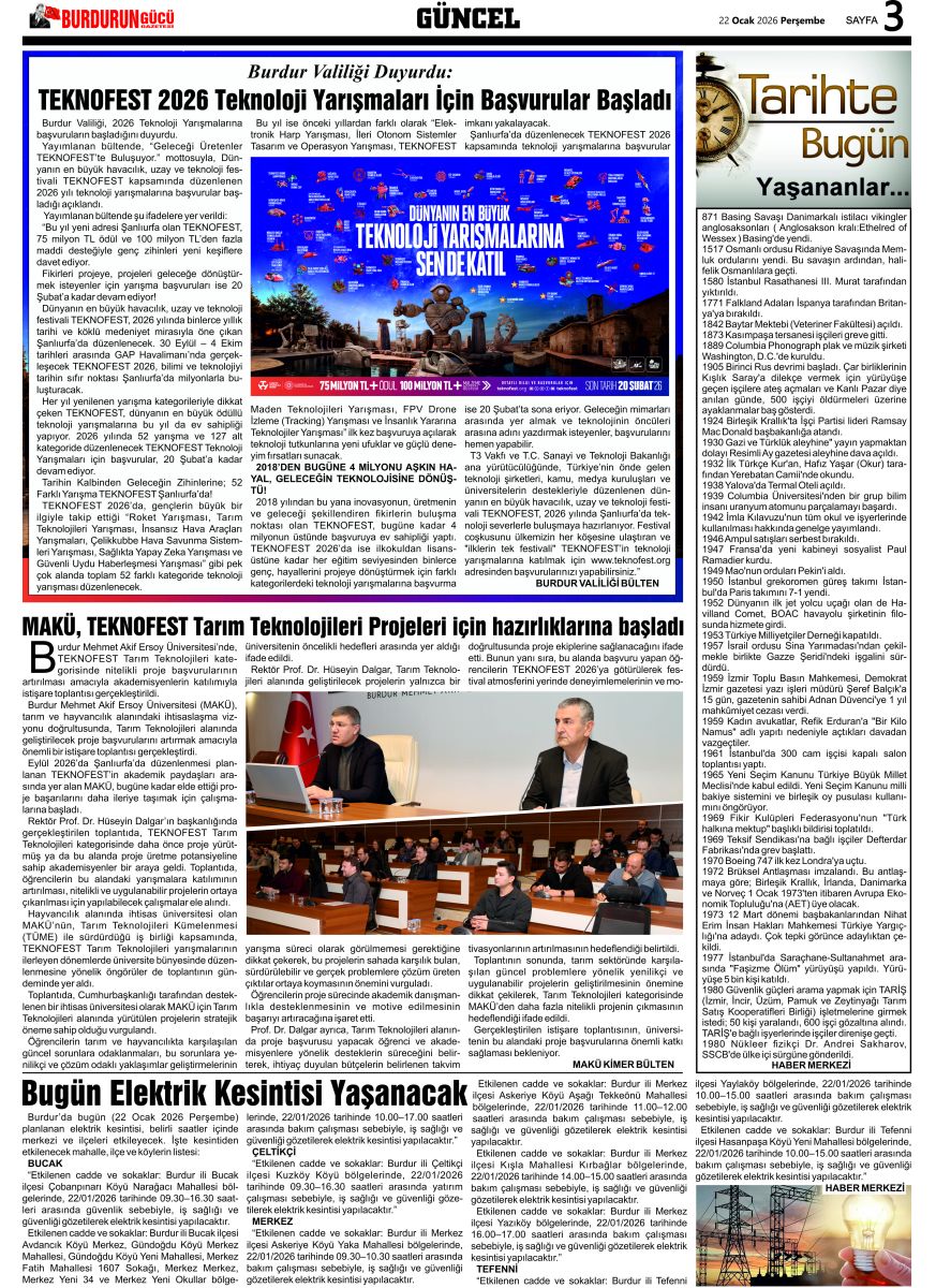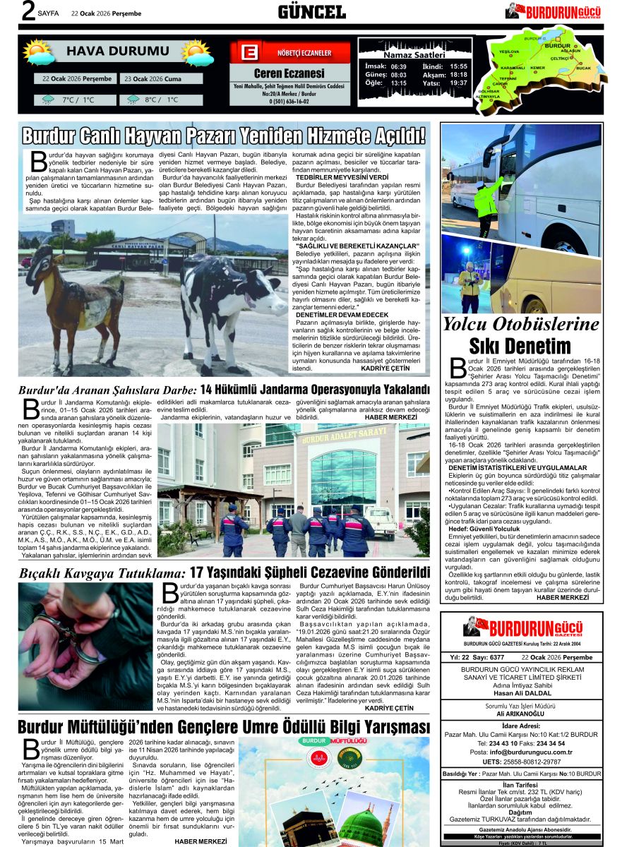 BURDURUN GÜCÜ 22 OCAK 2026 TARİHLİ SAYISI