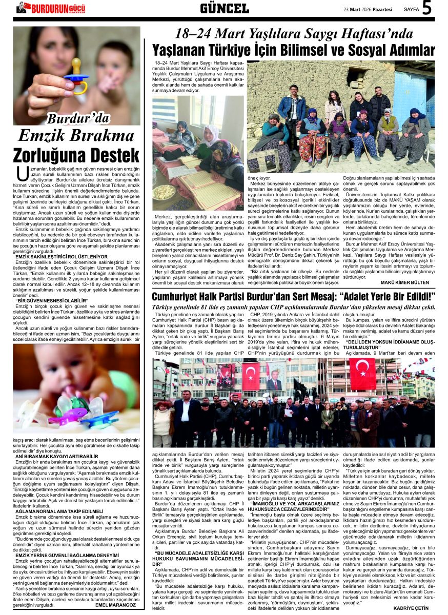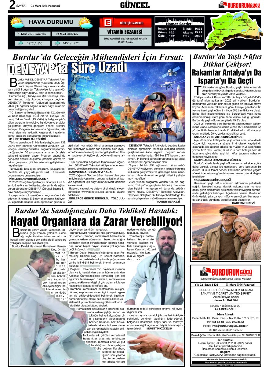 BURDURUN GÜCÜ 23 MART 2026 TARİHLİ SAYISI
