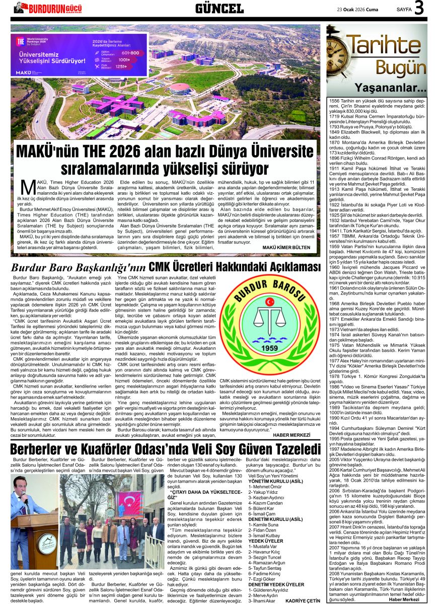 BURDURUN GÜCÜ 23 OCAK 2026 TARİHLİ SAYISI