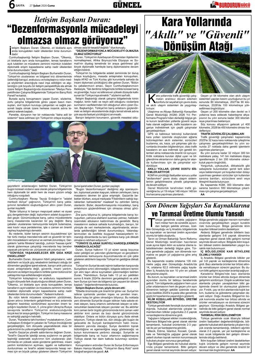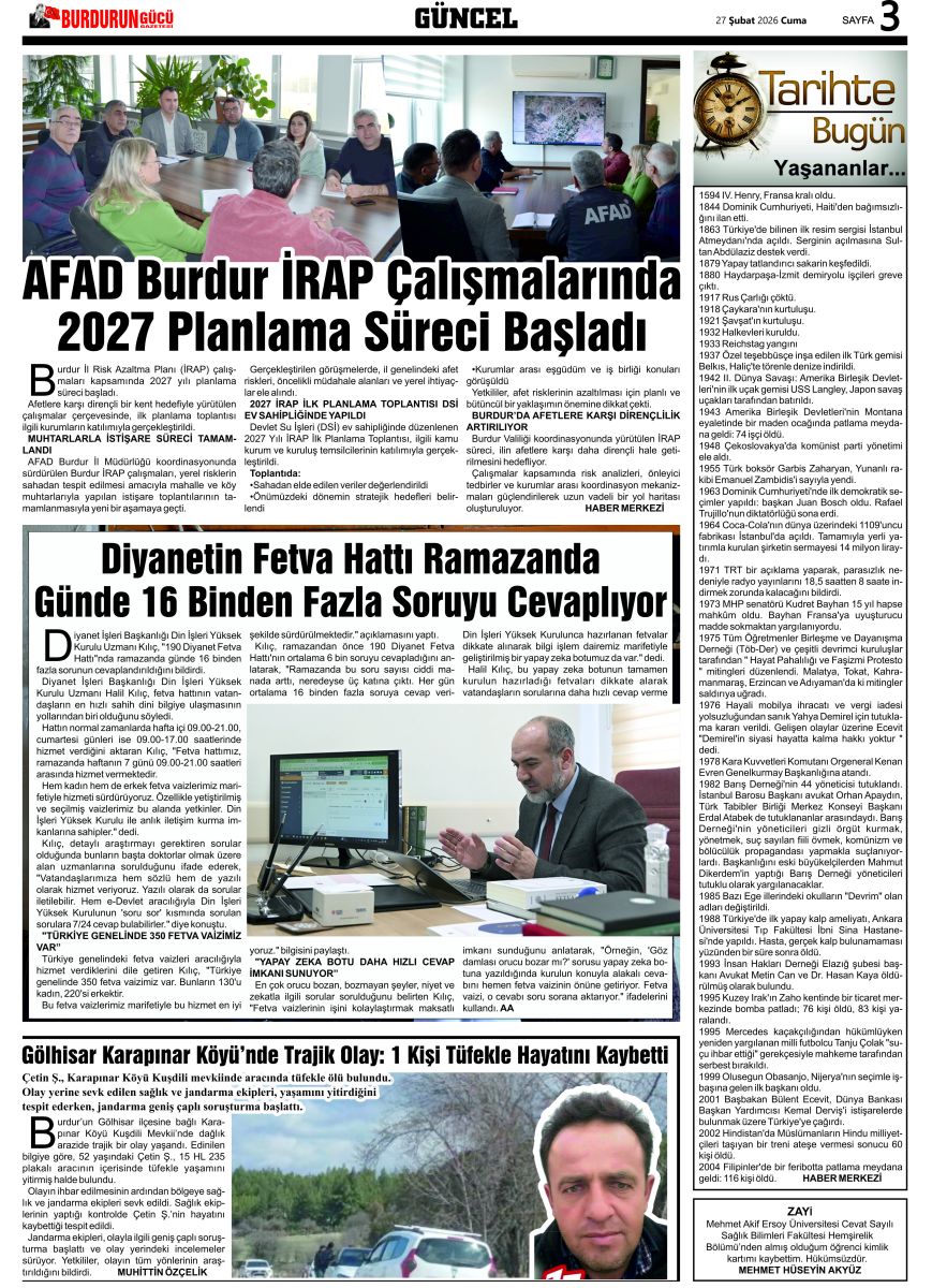 BURDURUN GÜCÜ 27 ŞUBAT 2026 TARİHLİ SAYISI