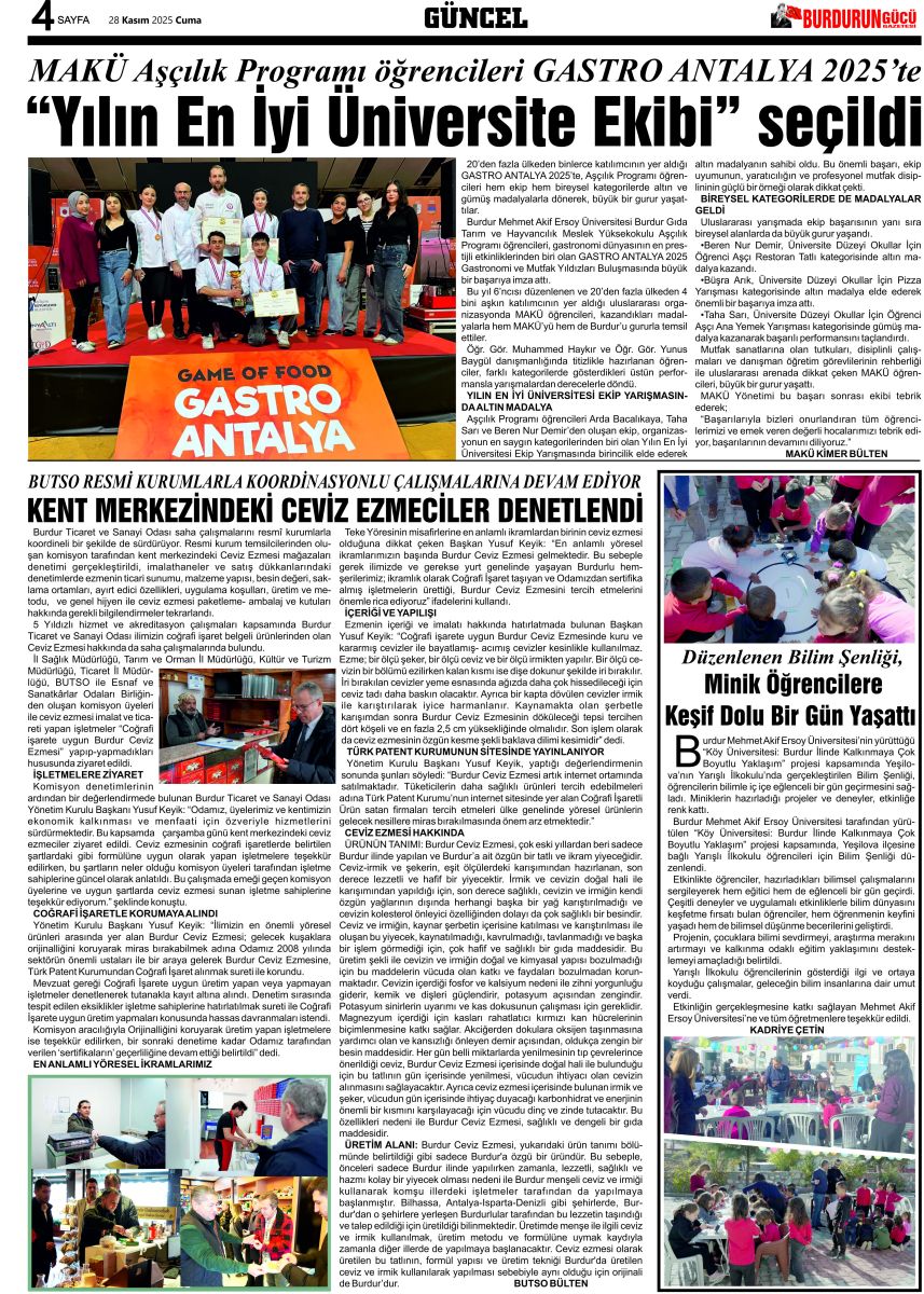 BURDURUN GÜCÜ 28 KASIM 2025 TARİHLİ SAYISI