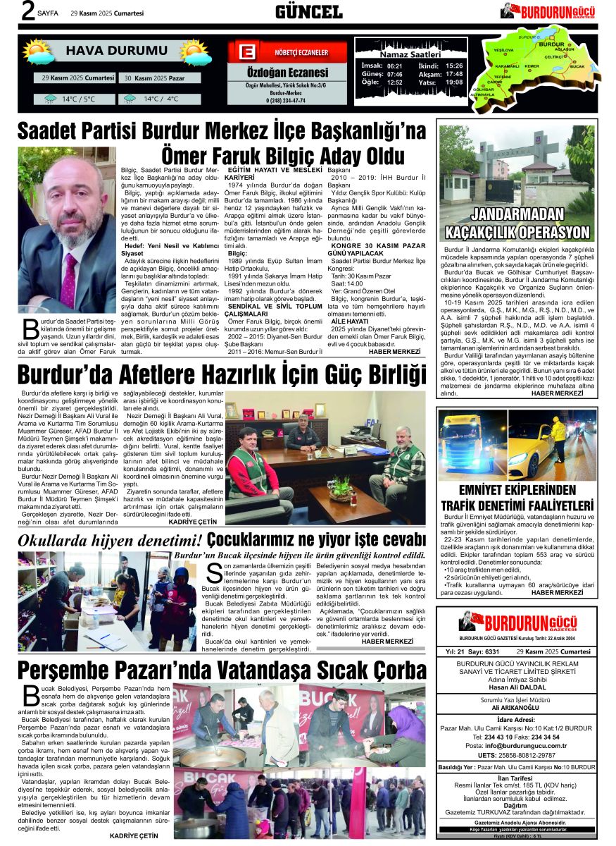 BURDURUN GÜCÜ 29 KASIM 2025 TARİHLİ SAYISI