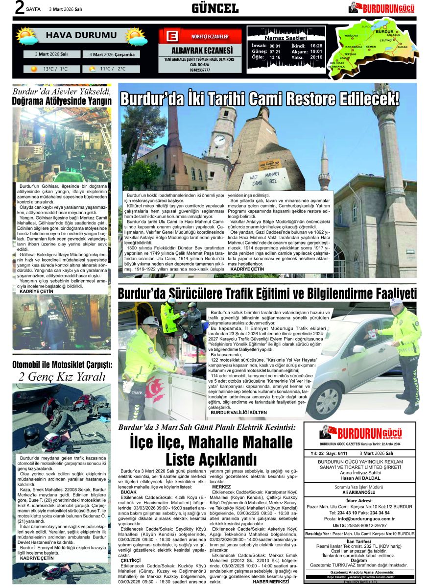BURDURUN GÜCÜ 2 MART 2026 TARİHLİ SAYISI