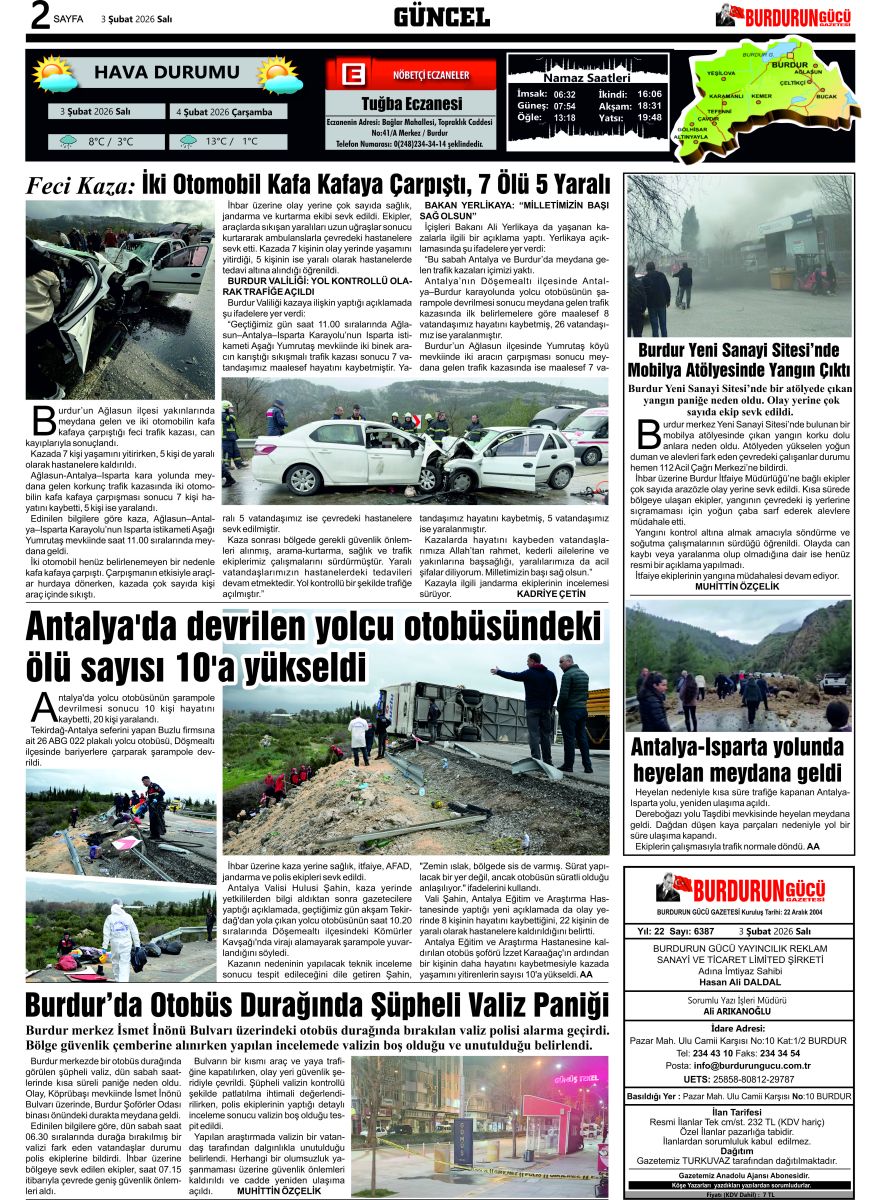 BURDURUN GÜCÜ 2 ŞUBAT 2026 TARİHLİ SAYISI