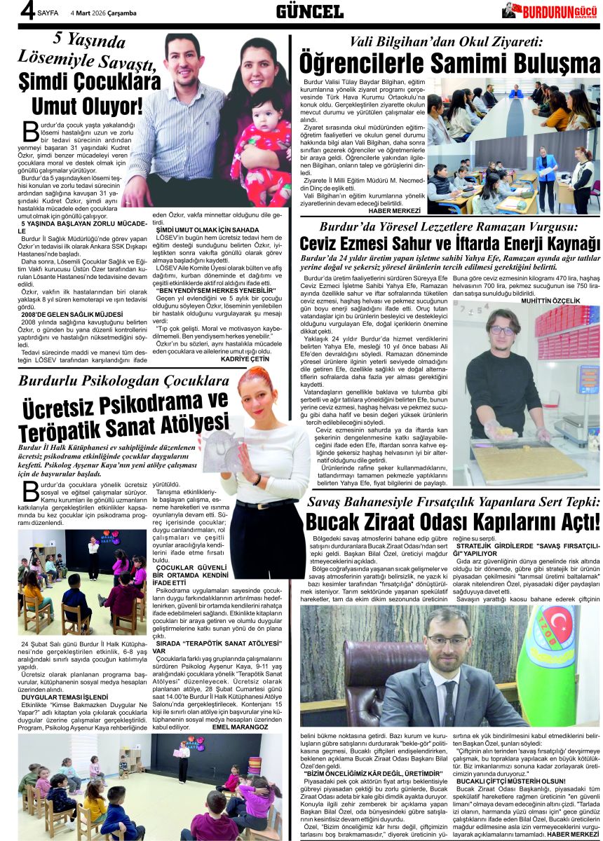 BURDURUN GÜCÜ 4 MART 2026 TARİHLİ SAYISI