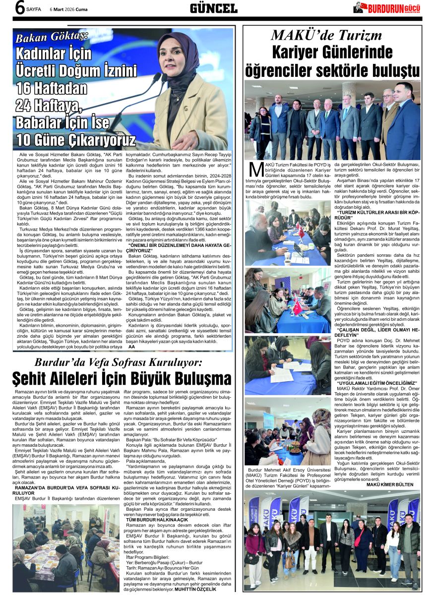 BURDURUN GÜCÜ 6 MART 2026 TARİHLİ SAYISI
