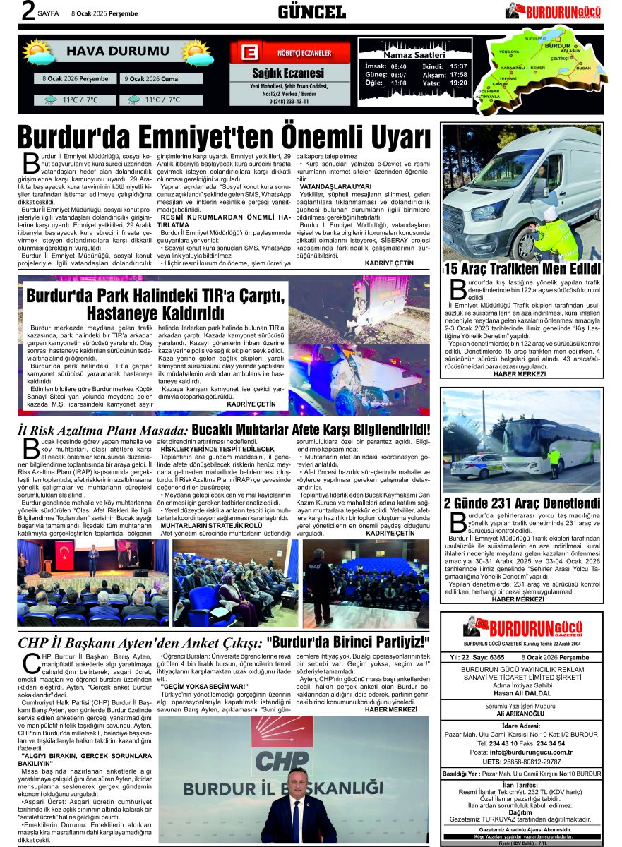 BURDURUN GÜCÜ 8 OCAK 2026 TARİHLİ SAYISI